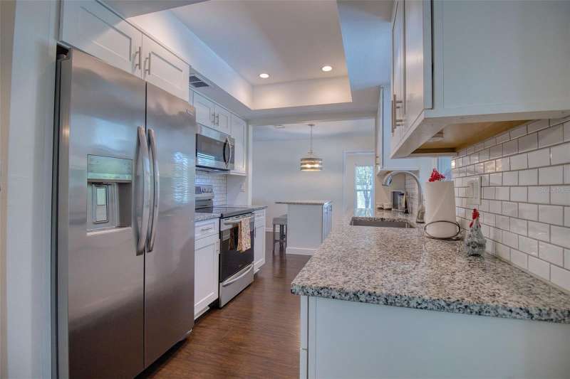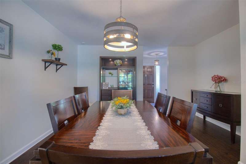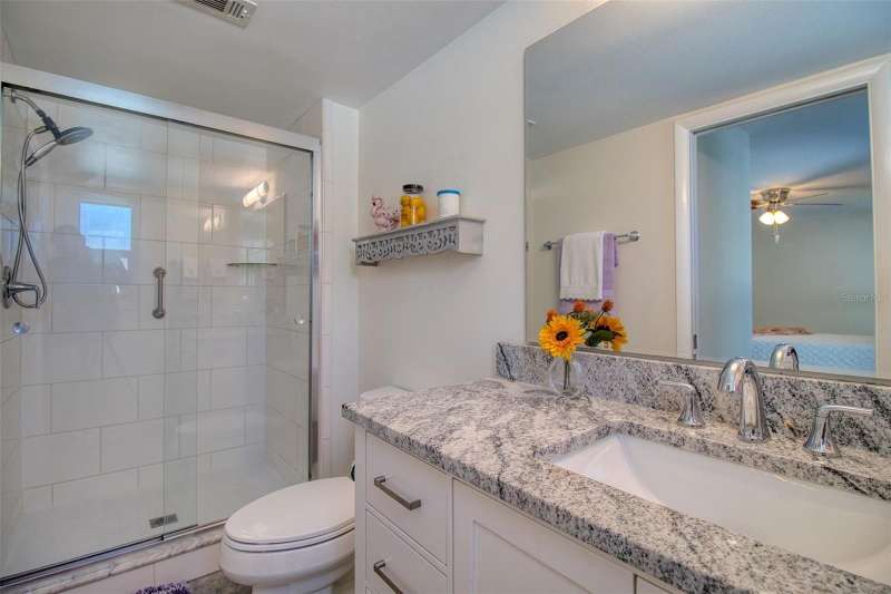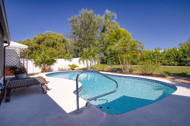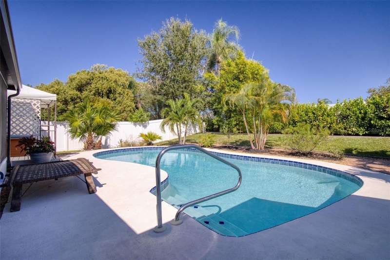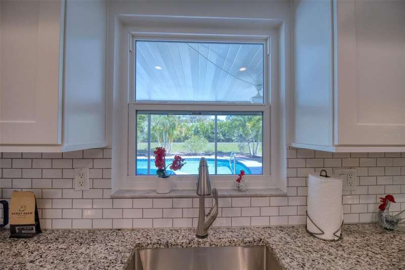 This home ticks all the boxes: Owned solar panels: Tick. Newer roof: Tick. Hurricane windows and sliders: Tick. Pool & Jacuzzi: Tick. 3 beds, 2 baths: Tick. Oasis Backyard: Tick. Close to shops and restaurants: Tick. Excellent schools: Tick. This tres chic 3 bedroom, 2 bath pool home sits gracefully on a beautifully landscaped oversized lot, NOT A FLOOD ZONE in the desirable Countryside Woodgate neighborhood. This charming home is tastefully renovated and boasts a living room, formal dining room and a large outdoor Florida room, 3 generous sized bedrooms, a spacious kitchen with exquisite granite countertops, soft close white cabinetry and newer stainless steel appliances. The primary bedroom is split from the other bedrooms and is a bright and spacious retreat with an ensuite bathroom that has been tastefully renovated with a granite countertops and frameless glass shower surround. The home's 2nd bathroom mirrors this modern aesthetic with its streamlined fixtures and modern granite countertops and features a beautiful tub and shower combo. The huge Oasis backyard is awesome! It is so beautiful outside with stylish pavers and many native flowers and plants that attract birds and butterflies. The jewel of this magnificent backyard is a large swimming pool. The backyard is accessed from the light and bright Florida room, opening up on to a large patio with a jacuzzi for a seamless blend of indoor/outdoor entertainment living. The spacious yard is fenced with a white vinyl fence (2020) for privacy and pool safety. There is also a fire pit and an outdoor shower to round out this magnificent backyard. This home is move in ready with tasteful touches such as; neutral color tones, newer fans, modern light fixtures, laminate wood look floors throughout this impeccably clean and welcoming home. This home also features newer rain gutters, hurricane impact windows (2019), newer roof (2022), solar panels (2022), a/c and duct work (2021), water softener (2020), newer hot water heater, newer well pump for irrigation and pool pump, and exterior paint (2025). There is plenty of natural light and room to grow in this well laid out open floor plan. This layout allows the ability to convert the formal dining room into an office. Couple this with approx. $50 a month electric bills, excellent schools and close to shops, airports, beaches and all that fabulous Clearwater has to offer and you have the quintessential Florida lifestyle home.
