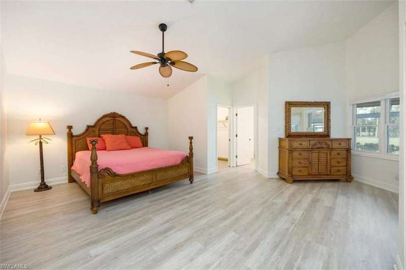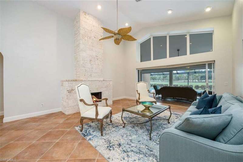 Discover this exceptional FURNISHED TURNKEY 3-Bed +Open Den/ 2.5-Bath single-family home at the END OF A CUL- DE-SAC the sought-after Egret floor plan, perfectly positioned on the 16th fairway with a panoramic screen view of the lake and 17th green. Designed for Entertaining, this residence boasts a gourmet open kitchen with stainless steel appliances and banquet-style dining room, vaulted living room with fireplace and Hurricane impact windows. Pocketing sliders open to a Hurricane-protected lanai, ideal for enjoying the Florida lifestyle year-round. A combination of tile in the main living areas and LUXURY plank Vinyl flooring in bedrooms, and a private lap pool complete this inviting home. Nestled in the South Naples exclusive Eagle Creek Golf & Country Club-home to just 458 residences-residents enjoy access to a 18-hole championship golf course, tennis, PICKLEBALL, Bocce, multiple dining options, expansive fitness center, and a walkable community of Condos, Villas, and Estate Homes. This property requires a Social Sports Membership however for an additional 40k you could UPGRADE to THE "GOLF IN WAITING PROGAM" if you enjoy a year round golf experience!!