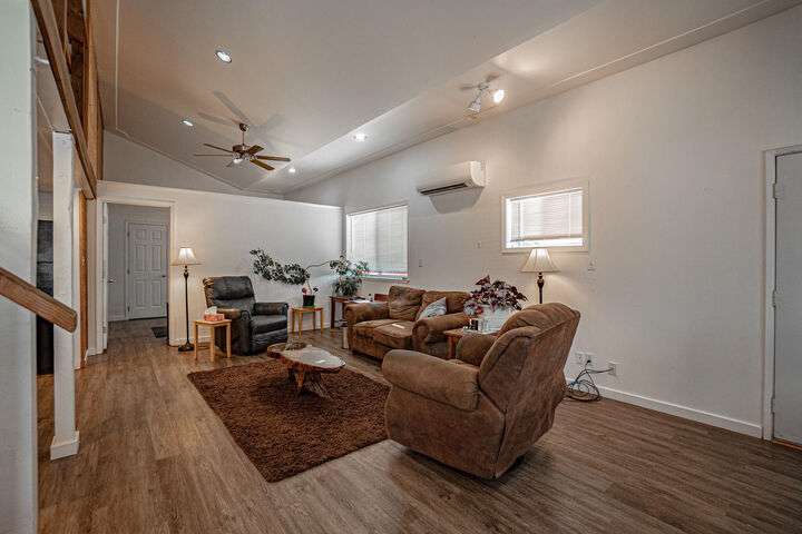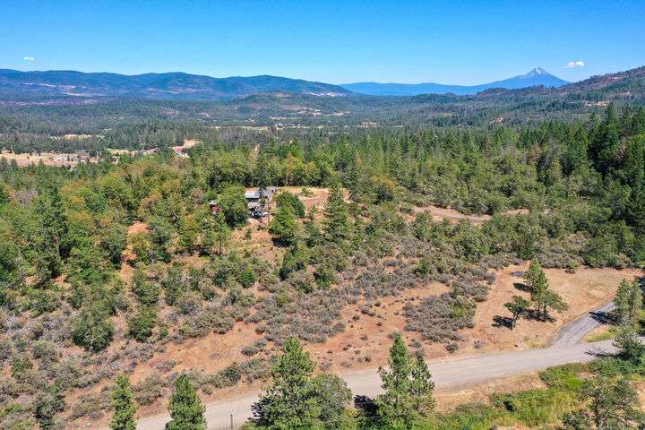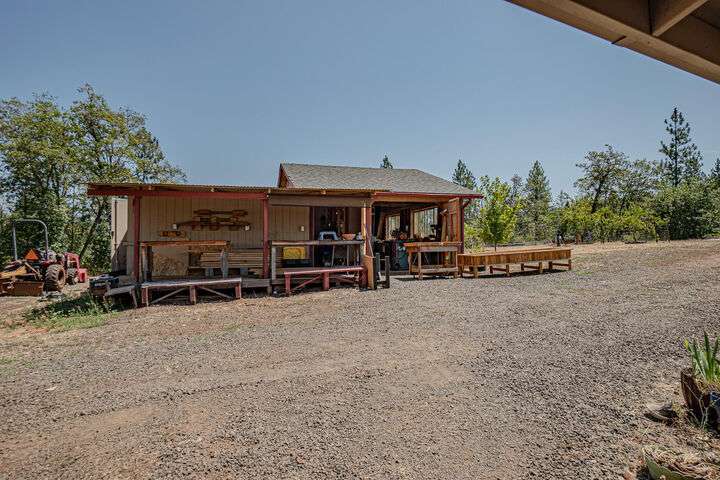 This well-maintained home sits in the hills of Eagle Point w/beautiful views and offers some peace and quiet! At 1296 sq ft this home features 1 bedroom downstairs w/a full bathroom, walk-in shower, laundry room and walk-in closet. Upstairs offers a big loft w/an attached full bathroom, shower/tub combo and a huge closet/storage area. Open concept living with lots of natural light. In 2019 the home was updated w/vinyl dual pane windows, laminate flooring, septic and an energy efficient heating/cooling mini split system. Most recent updates include exterior paint, solid wood staircase and loft railing, finished full bathroom upstairs, pantry storage under stairs, certified wood stove and an expansion of the storage/workshop outbuilding. Property is just under 10 acres, offers plenty of space for toys, garden needs, recreational uses and has full RV hook up with a separate septic. Bid for new well on hand, seller to negotiate $10,000 towards new well.