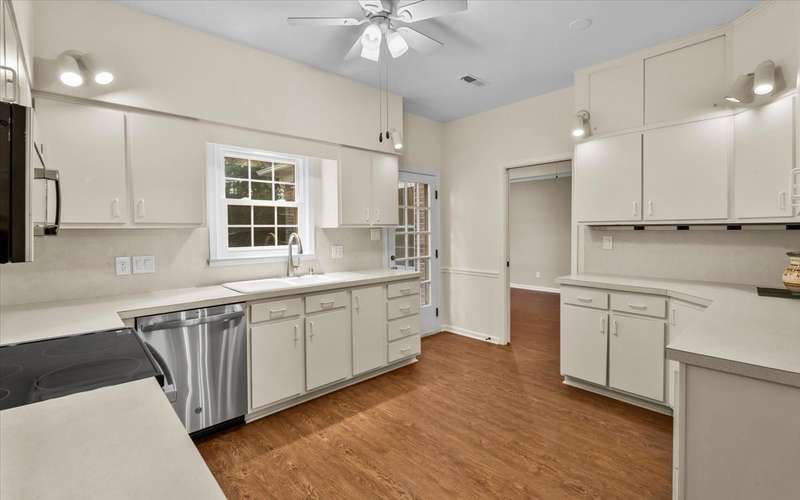 New Roof! Experience Fountain Manor's popular 2 story floor plan with a versatile den, full bath with walk in shower on the main level. The interior has been thoughtfully refreshed with neutral paint and smooth ceilings, providing a modern and clean aesthetic. Recent updates include new flooring throughout the main level and newer carpet on the upper level, new windows, updated electrical and a brand new upper level hall bath. Recessed lighting in the primary bedroom and den. There are new stainless kitchen appliances in the original kitchen. All bedrooms on the second level have huge closets. Nice private patio and storage in back. ***HOA includes City Water, Lumos fiber optic internet and a lovely pool just across the way***. All electric 2 zone HVAC recently serviced.