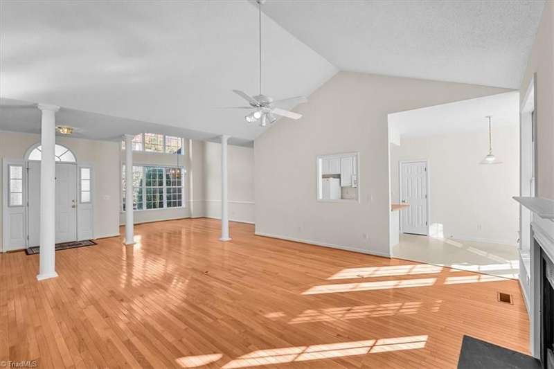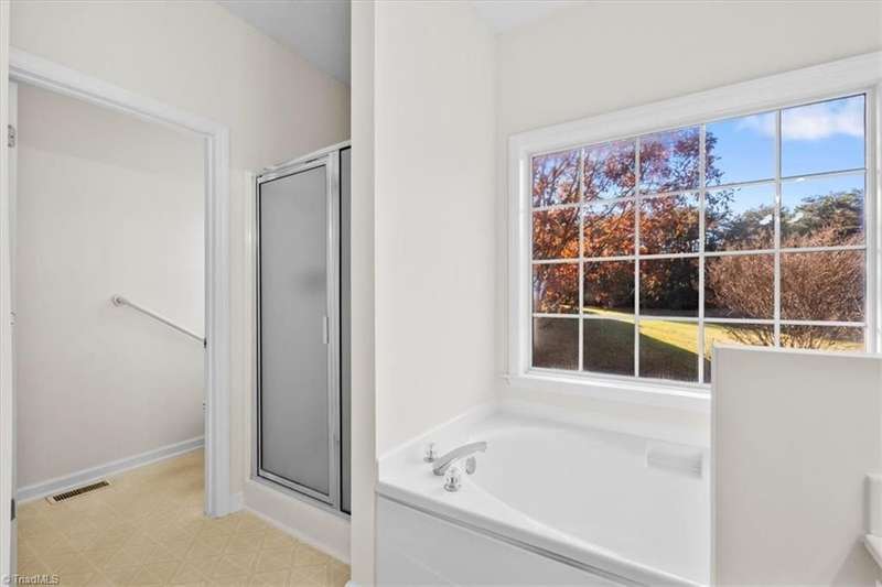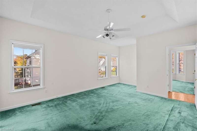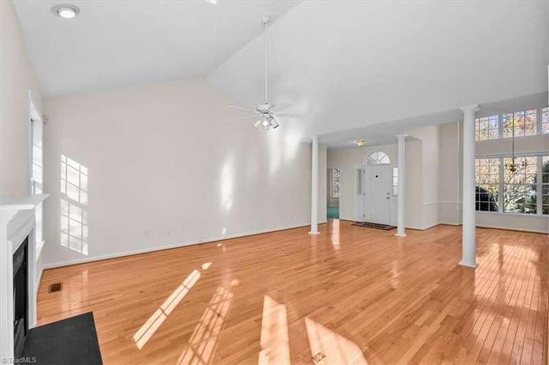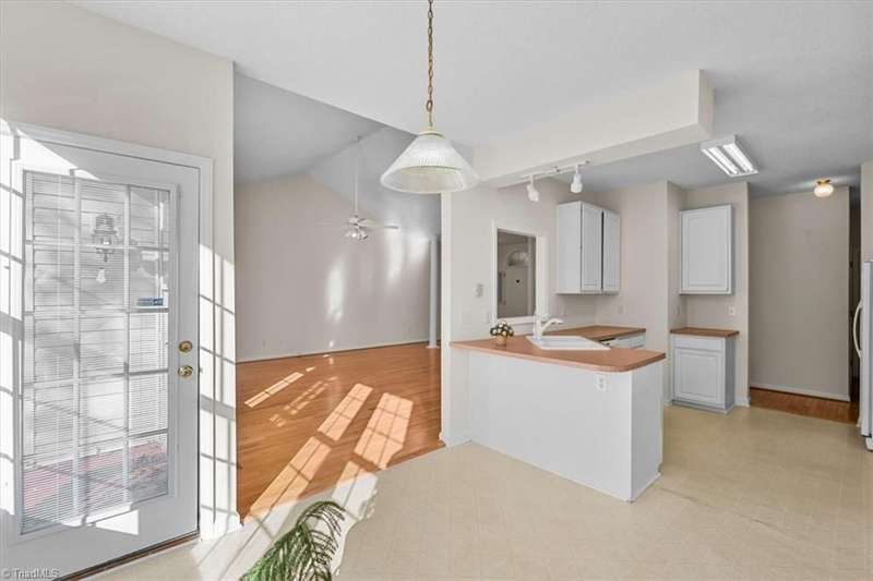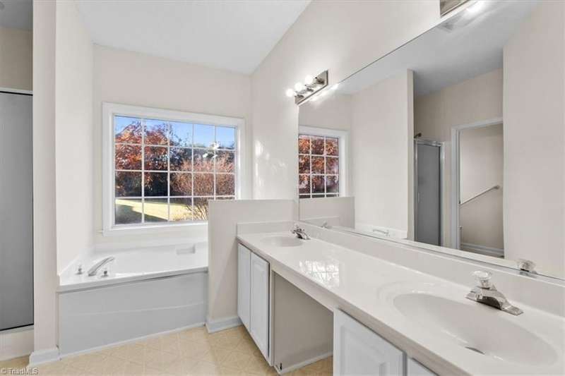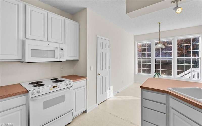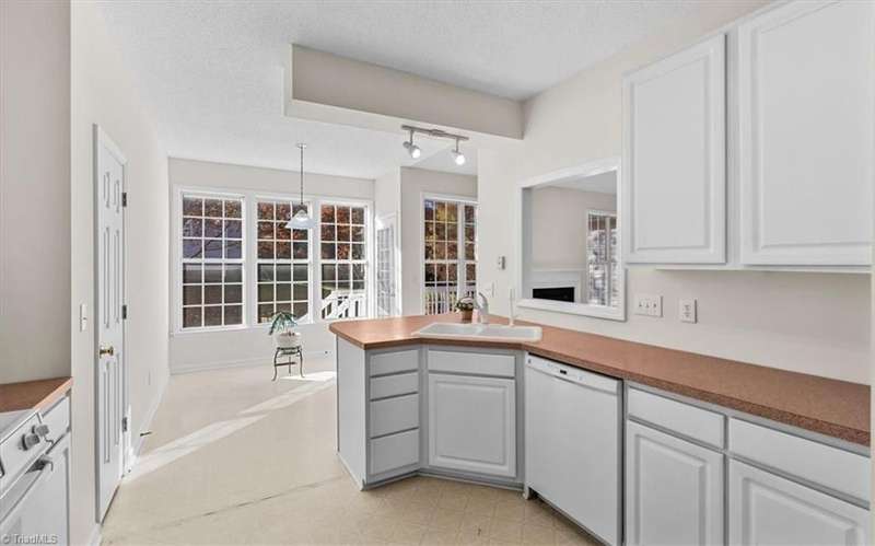 One-story home in popular Northwestern Greensboro with amazing floor plan! Super open with many wood floors through living space, soaring ceilings, gas log fpl & numerous windows add to the openness. Kitchen is specious with pass-through to living, pantry plus breakfast that opens to deck. Primary Bedroom with tray ceiling, sitting area, walk-in closet, walking shower, garden tub, dual vanities and dressing area. Freshly painted interior, bedroom plan, all appliances remain, 2 car garage with good storage, new water heater, whole house water filtration system, new shower fixtures, sizable deck also just painted plus Wonderful neighborhood location on culdesac street, very close to shopping, schools, restaurants, Spears community center, Proelific Park plus numerous major roadways! Hurry to make your appt!!