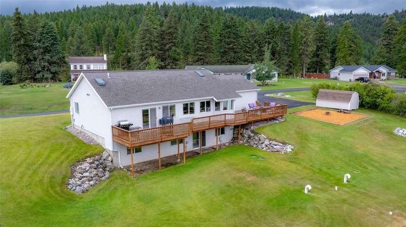 Discover your dream home at 106 Rainbow Drive! This stunning 4-bedroom, 3-bath residence offers peek a boo views of Foys Lake and is perfectly positioned within a short distance to Herron Park and Lone Pine State Park-ideal for outdoor enthusiasts. Enjoy a spacious, light-filled layout with open-concept living, perfect for entertaining or relaxing. Retreat to the generous primary suite with its own private bath, while additional bedrooms provide flexibility for guests, home office, or hobbies. Large walk out basement and additional storage space. Possibility of creating a wet bar for additional entertaining. Step outside to enjoy the massive backyard, fire pit area and storage shed. With quick access to hiking, biking, and water recreation, this home blends comfort, convenience, and Montana beauty. A rare opportunity in a highly desirable location!