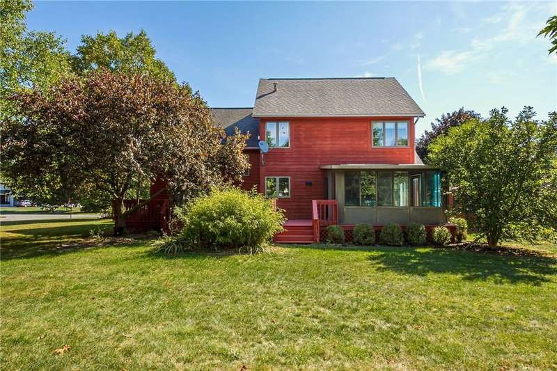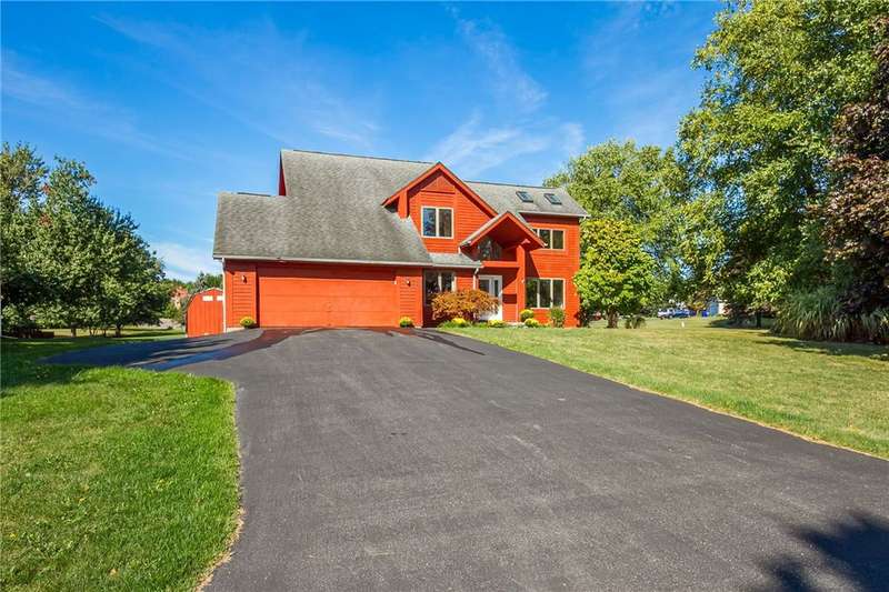 Welcome Home! This beautiful three bedroom colonial in Chili is ready for its new owner. Step inside and notice an open and inviting layout with abundant natural light and stunning custom woodwork. This home combines modern amenities with stylish design, boasting spacious formal dining room w/ oak hardwood flooring and panoramic windows. The living room has a lofty 2 story ceilings, cozy fireplace and beautifully detailed french doors leading to the deck. Entertaining is a breeze in the open kitchen with dinette/family room and plenty of storage, counter space plus a pantry! Heading upstairs you'll notice impressive detailing in the stunning custom wood and glass rail. Beautiful hardwood flooring continues upstairs, flowing into 3 large bedrooms plus a Loft. Abundant natural light floods the Loft which makes a great office, den, or craft area! The large Primary bedroom features a walk-through closet and primary ensuite w/ spacious tile shower, glass enclosure and heated floors! Outside enjoy a sizeable yard with an expansive deck wrapping the back of the home. Relax and enjoy the peaceful sounds of the decorative pond with water feature. Additional entertainment space in the attached Florida room which is hook up ready for your hot tub! New HVAC 2024!.