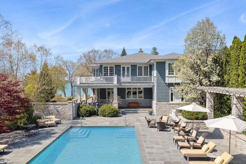 Combining luxurious living with breathtaking natural beauty nestled on the shores of Lake Michigan, this stunning estate boasts a custom built 4-bedroom main house & a separate 3-bedroom guest house, offering unparalleled comfort and privacy for you & your guests. Every inch of this immaculately appointed estate has been thoughtfully curated, expertly designed & constructed to the highest standards of luxury & sophistication. This world-class home spans more than 10,000 square feet. The custom design & attention to detail are evident throughout; high ceilings, elegant finishes, & an abundance of natural light that pours in through large windows, providing dramatic views of the lake. The custom Boilini pool, gardens, & guest house add to the charm of this elegant Grand Beach estate. The main house boasts four generous bedrooms, each offering a private sanctuary for rest & rejuvenation, a full private gym, a lakeside office, & two gorgeously appointed laundry rooms. The master suite is a true oasis, complete with a luxurious en-suite bathroom, & walk-in closet. Each room of this special home shines in unparalleled Lake Michigan sunsets. The heart of the home is a chef's dream kitchen, featuring top-of-the-line appliances, a spacious center island, and ample counter & storage space. Whether you're preparing a casual meal or hosting a lavish dinner party, this kitchen will exceed your expectations. Adjacent to the kitchen is a sophisticated dining area, perfect for enjoying intimate meals with family and friends. The adjoining living room offers a cozy fireplace & comfortable seating, creating an inviting space to relax & unwind. The spacious office looks out to the lake, & is beautifully appointed with built-ins throughout. The outdoor space is equally impressive, with custom-designed Boilini pool that serves as the centerpiece of the meticulously landscaped grounds. Dive into the refreshing waters or simply lounge poolside, enjoying the warm sun & gentle breezes. Entertain guests with ease hosting unforgettable gatherings against the backdrop of the tranquil lake. The guest house is a true gem, offering three well-appointed bedrooms, two wet-bars, two full baths, gaming area, & private laundry facilities. Your guests will relish in the privacy & comfort provided by this separate dwelling, creating a memorable & enjoyable experience for all. Sun Valley Falls offers more than just a home; it offers a lifestyle. Situated in the friendly Lake Michigan community of Grand Beach, just an hour outside of Chicago, this property provides an idyllic setting to embrace all that Lake Michigan living has to offer. Don't miss the opportunity to own this extraordinary estate, where luxury, comfort, & natural beauty converge. Contact us today to schedule a private viewing & experience the magic of Sun Valley Falls for yourself.