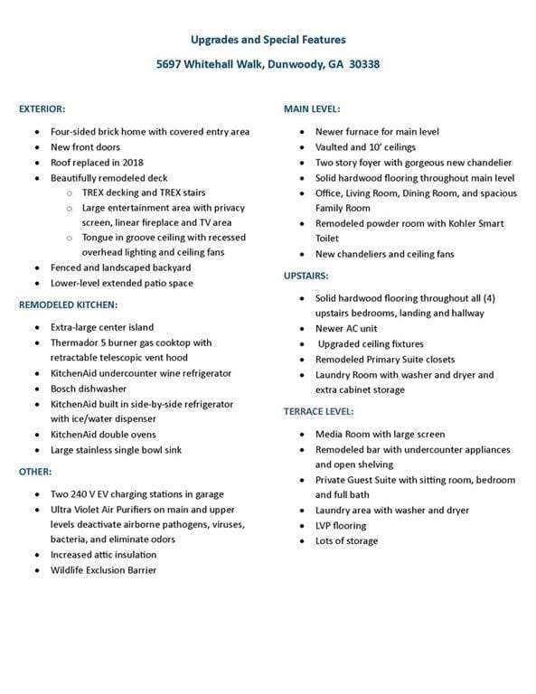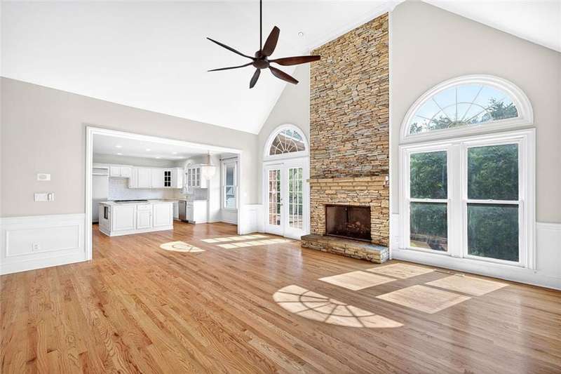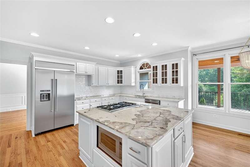 Stylishly remodeled, four-sided brick home in the conveniently located community of Whitehall. Only 3 minutes to Davis Academy. Incredibly convenient to GA 400, Perimeter Center, Dunwoody Country Club and a variety of restaurants, parks, and medical services. Excellent schools - Austin Elementary. Built by John Wieland. Fabulous MAIN LEVEL features two story foyer, many new light fixtures, hardwood floors throughout, vaulted ceilings, and crown moldings. Remodeled kitchen with lots of storage and high-end KitchenAid, Bosch and Thermador appliances, oversized center island, gorgeous granite and new tile backsplash. Family Room features floor to ceiling stacked stone fireplace, and custom bookcases that span the length of the room. The main level is perfectly designed for entertaining! Enjoy a private, covered Trex deck for year-round entertainment featuring tongue-in-groove ceiling, fans, recessed lighting, and a linear gas fireplace with TV connections. UPSTAIRS with four spacious bedrooms, three full baths, hardwoods throughout and convenient laundry facilities. Primary Suite with beautiful bathroom and several spacious custom closets for incredible storage. Remodeled TERRACE LEVEL with home theater/media room, and bar/entertainment area. Fabulous guest suite with bedroom, sitting room and full bath. Additional laundry facilities and more storage. Terrific patio is perfect for grilling, dining, ping-pong and other games. You will love this beautifully remodeled home in this incredibly convenient location!!
