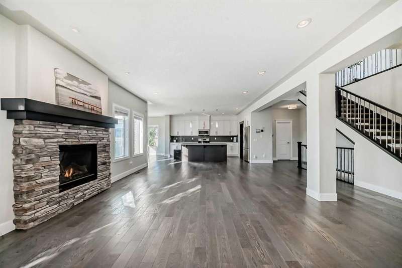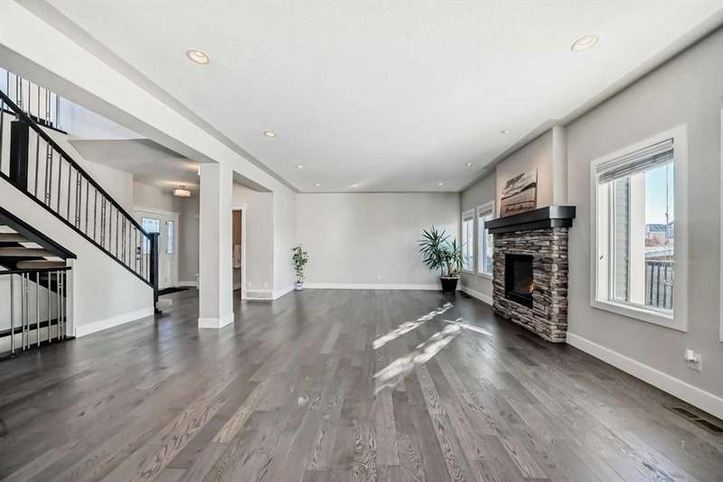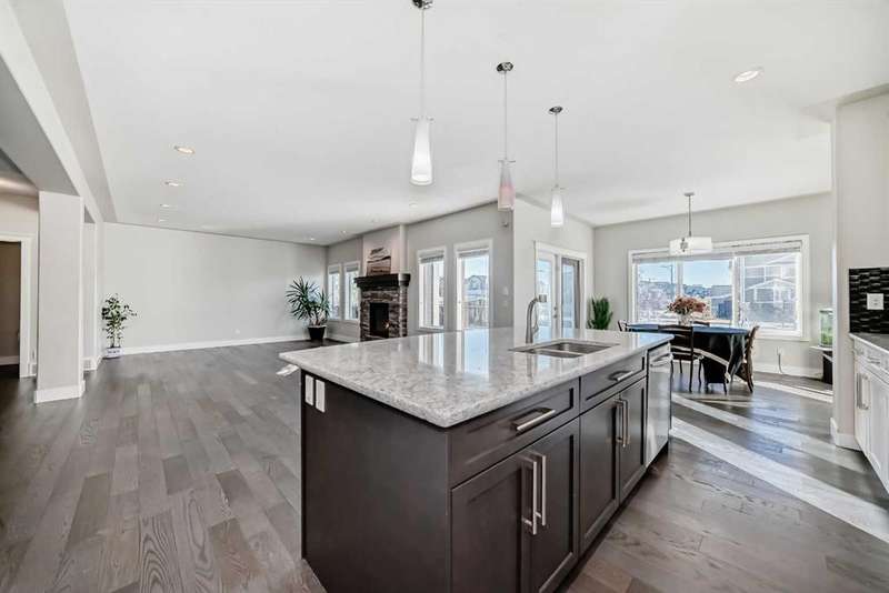 $40,000 PRICE REDUCTION and BRAND NEW CARPET IN THE UPPER LEVEL!!! Experience LUXURY and MODERN LIVING in this stunning home offering over 3,000 sq ft of developed living space in family-friendly Rainbow Falls, Chestermere. The main floor features a bright, OPEN LAYOUTperfect for gatherings, with a cozy GAS FIREPLACE, stylish eating bar, spacious dining area leading to a large deck, and a 2-pc bathroom. Upstairs offers three generous bedrooms, including a luxurious primary suite, huge walk-in closet, and 5-piece ensuite. You'll love the convenient upper laundry and versatile bonus room above the garage—ideal as a playroom, media room, or fourth bedroom. The fully finished basement adds a family room for movie nights with a second GAS FIREPLACE, a massive guest bedroom, and a full bathroom. Enjoy the CENTRAL AIR CONDITIONING, TRIPLE ATTACHED GARAGE and west-facing backyard. Perfect for families, entertainers, and anyone seeking space, style, and convenience—just minutes from Rainbow Falls Trail and all amenities. Book your showing today!