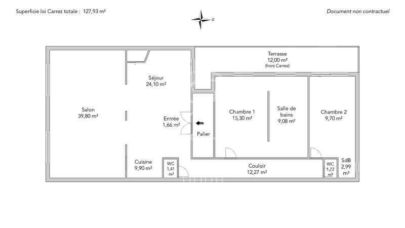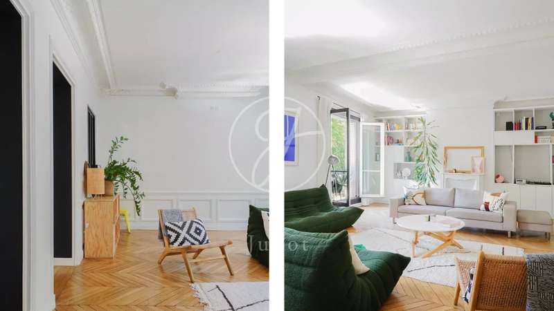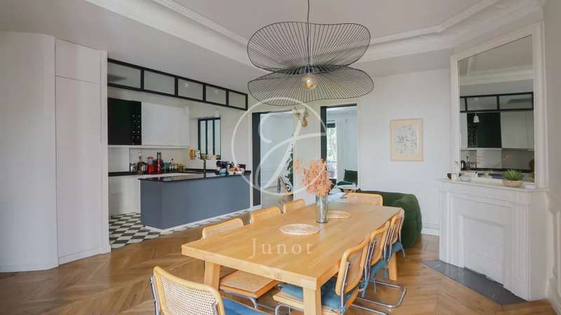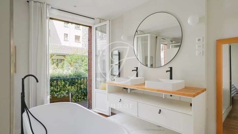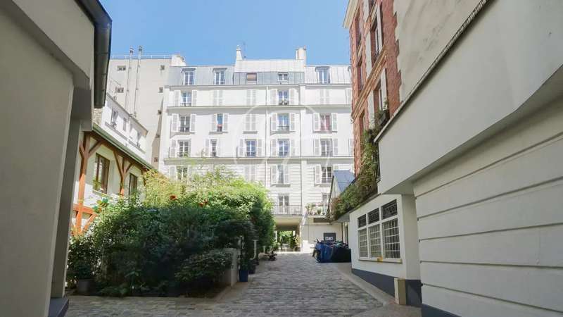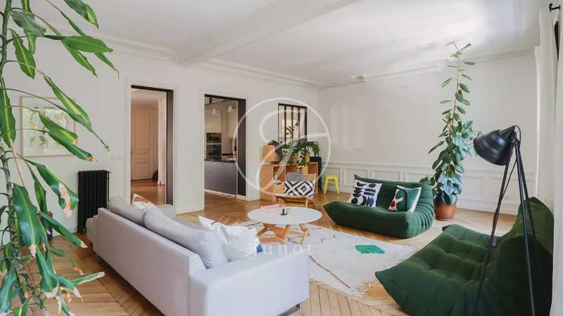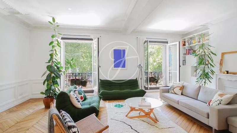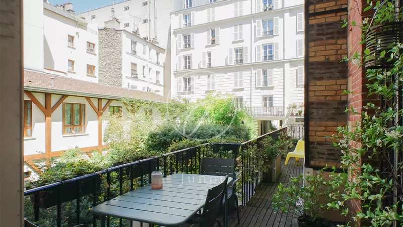 This elegant, triple-exposure 127.93sqm loi Carrez apartment opens onto a beautiful 12sqm west-facing terrace in a magnificent, green, secure condominium on the second floor with elevator. In perfect condition, it comprises a south-facing double living room, a dining room with open fitted kitchen opening onto a large terrace in absolute calm, a master suite with bathroom and plenty of storage space, a second bedroom with shower room, two separate toilets and a laundry area. Classic features include parquet flooring, moldings and fireplace. Bright property with outdoor space in a sought-after neighborhood, close to the shops on rue Lepic. Bike room.
