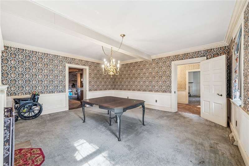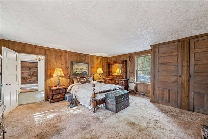 One-of-a-kind property in North Strabane. This home is a recognized historic landmark that sits on 13 lush acres of land. Imagine the possibilities: you can remodel and renovate the current home, build your own estate or develop the entire property. This land is exceptional, wooded with soaring views, private, and bordering a beautiful horse farm. The all-brick rustic home boasts spacious rooms and high ceilings, gorgeous woodwork and six fireplaces. Large addition off family room is perfect for entertaining, with a built-in bar and space for games and gathering. Basement is partially finished with ample storage. Charming back patio looks out to big, beautiful, private yard. Minutes from Route 19 and I-79. Oil and gas rights are not conveying with the property.