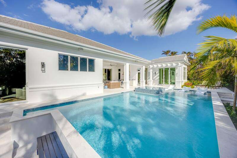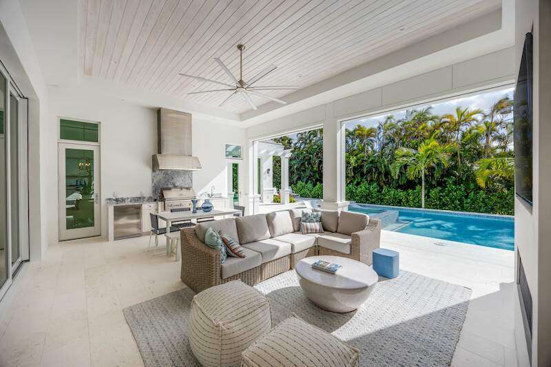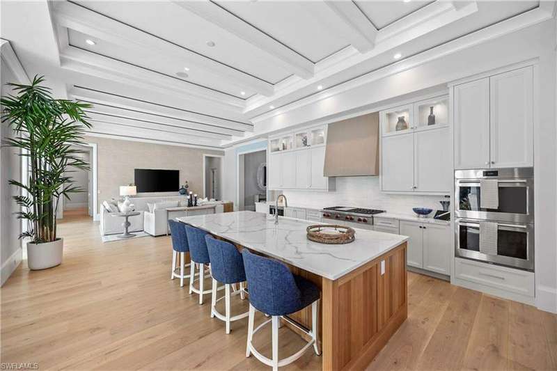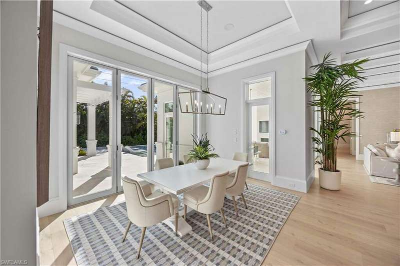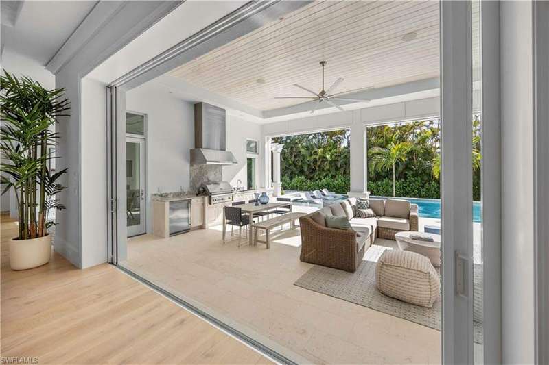 New construction! This exquisite Park Shore residence by Borelli Construction blends elegance, functionality, and modern luxury. The thoughtfully designed floor plan features a spacious great room, a gourmet kitchen with abundant storage, a working pantry, and four bedrooms with four full baths-plus a cabana with a half bath connected by a charming breezeway. Natural light pours in through southern exposure and fully pocketing 10-foot sliders, seamlessly connecting indoor and outdoor spaces. The interiors showcase European wide-plank white oak floors and detailed ceiling trim that elevate each space. The primary suite offers a sitting area, custom-built closet, and a spa-like marble bath with dual water closets and a luxurious wet room. Outside, experience the oversized pool with a sun shelf, integrated spa, and sunken fire pit framed by lush landscaping. The expansive pool deck and covered lanai-complete with screens, shutters, an outdoor kitchen, a white-washed cypress ceiling, and a fireplace-create the perfect retreat. Additional upgrades include a whole house water purification system, SubZero/Wolf appliances, Control4 and Lutron home automation, hard-wired electric shades, a 1,000-gallon propane tank, and a whole-house generator. Clive Daniel eloquently appointed this home, which is built a foot above the new FEMA base flood elevation, delivering timeless style and peace of mind.