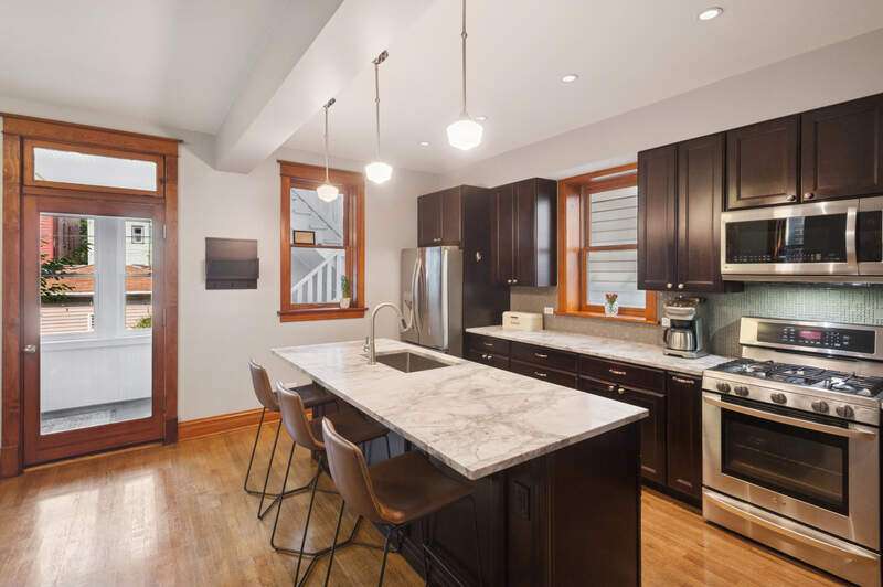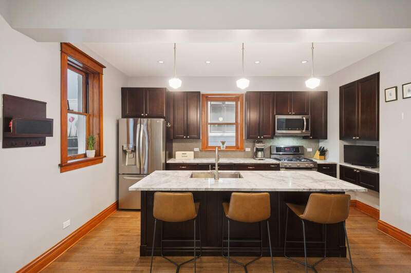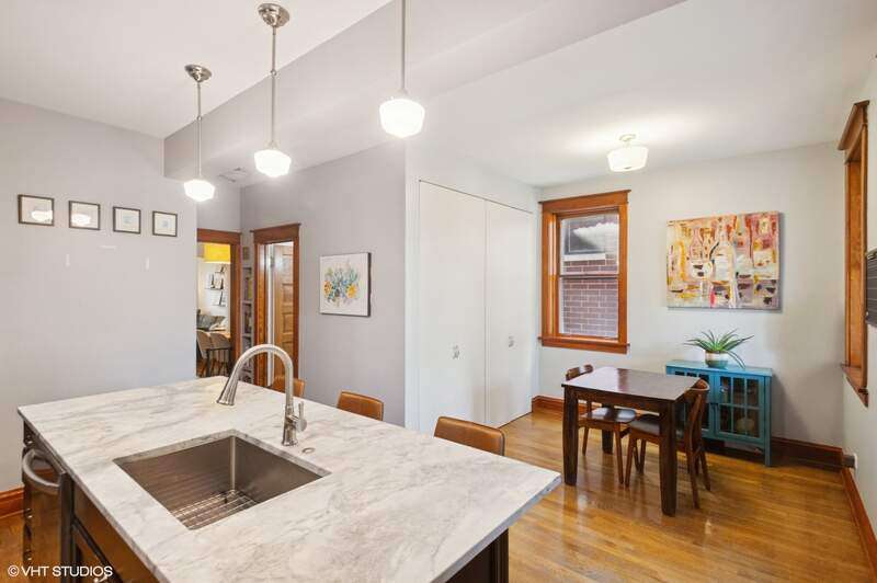 Sitting on an oversized lot, this gorgeous brick single family home on a pretty tree-lined street is just a stone's throw to Lincoln Square and offers an ideal blend of classic Chicago charm and modern convenience. This intelligently converted and redesigned two-flat to single family, provides exceptional space with 4 bedrooms, and 3 full bathrooms, including a beautiful primary suite. Throughout the home, you'll appreciate the restored vintage millwork that adds character and warmth to every room. The main level welcomes you into the charming living room that opens to the formal dining room, complemented by a beautifully updated eat-in kitchen with Quartzite stone counters. This floor also provides a guest bedroom and full bathroom. Upstairs offers the most incredible space boasting 3 bedrooms, 2 full baths plus TWO additional rooms that can be used as living/family/office, etc. You have a generous primary suite with attached bathroom, and an organized walk-in closet with vintage pocket doors. The clean, unfinished basement houses the washer and dryer while offering excellent storage potential, or additional build out opportunity. Outside, enjoy the large backyard with patio space and the convenience of a two-car garage. Location is everything with this property, plus easy access to the EL & Metra. Enjoy all that Lincoln Square has to offer including boutique shops and notable restaurants. Sprawling 22 acres is Winnemac Park offering a prairie garden/nature trail, playground, trails, softball fields, soccer field, track, gym & more. Residents will appreciate the Sacred Heart bus pickup just two blocks away and proximity to so many additional coveted schools including Lycee, Montessori, Waldorf, German International School, Waldorf, Gardner School and North Park Elementary. BEST & FINAL OFFERS due on Monday, August 11th @ 5pm.