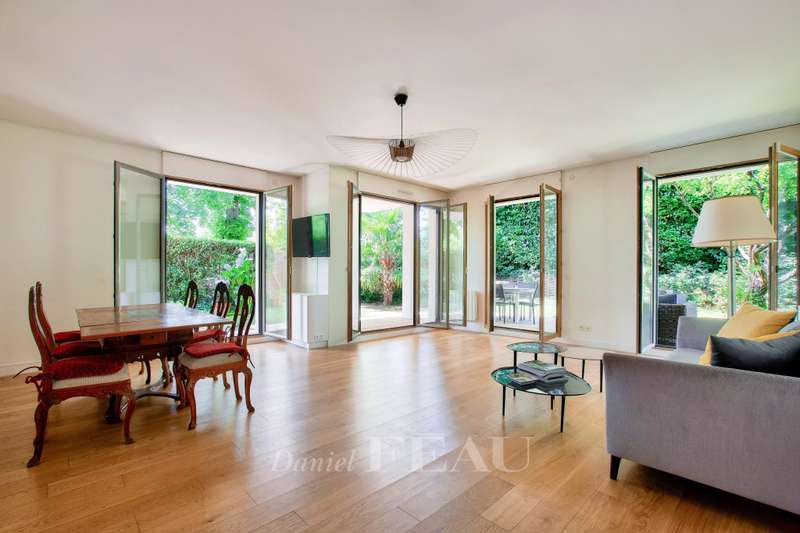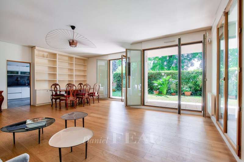 This apartment offering 115 sqm of living space as defined by the Carrez Law is on the garden level of a luxurious recent residence located a 2-minute walk from the centre of Garches. South and west facing and benefiting from a 186 sqm garden, it includes a 41 sqm double living/reception room, a 15 sqm kitchen (open-plan would be possible), a 25 sqm master bedroom, a shower room, a guest bedroom with a sofa-bed and bathroom, and a separate wc. The apartment features high ceilings and benefits from an optimised floor plan. With two basement parking spaces. And a cellar.