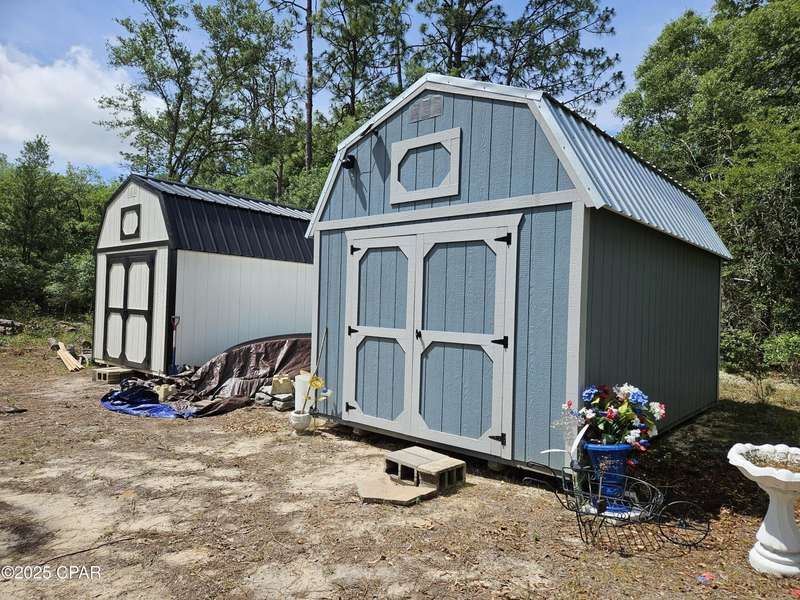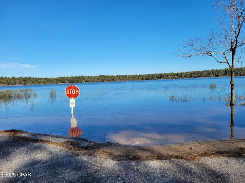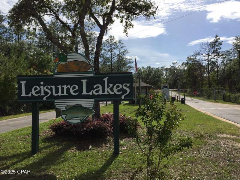 This flat lot has already been prepared for new construction. It has been cleared in the middle, has a deep well, septic tank and field lines, fenced on 3 sides, 2 new portable storage buildings each measuring 10x16, a circle driveway has been cut, and mailbox is up! It also has a numbered street address and is on the mailbox. A recent survey revealed the lot measures 1.27 acres. Now that Hwy 77 is mostly finished, it does not take long to get the Panama City from the security gated lake subdivision. It's about 30 minute drive to Panama City, and about a 40 minute drive to the World's Most Beautiful Beaches! Live gate guards are on duty weekdays, other times each property owner has a unique code for entry. The resort-like community offers 2 lakes, boat launch, swimming pool, covered pavilion with men's and women's restrooms, basketball court, tennis court, picnic areas, toddler playground and more. The fishing is good and a prime lake for exploring on a kayak or paddle board. Come see how life at the lake can be!