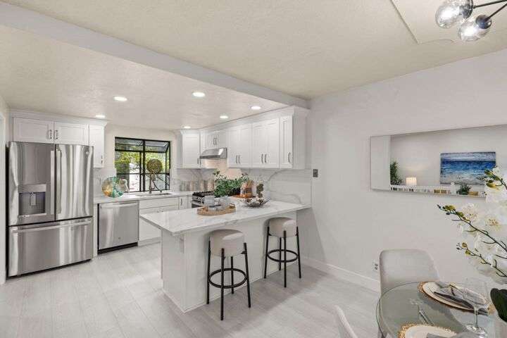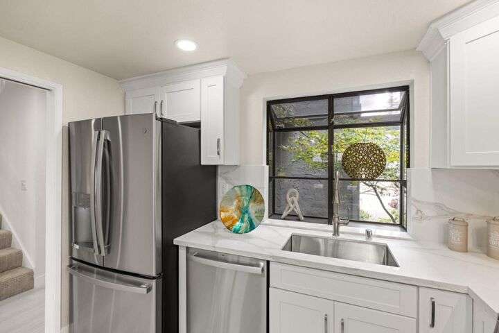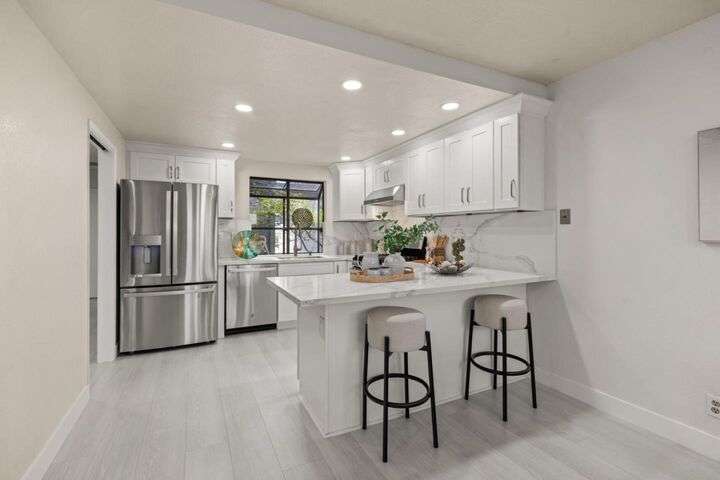 Beautifully updated 2,196 SQFT residence blending modern finishes with everyday function. A brand-new kitchen anchors the main level with stainless appliances, quartz counters, breakfast bar, and open sightlines to the family roomideal for casual dining or game night by the fireplace. Upstairs, the oversized primary retreat features vaulted ceilings, a refreshed double-sink vanity, and generous closet storage. A top-level loft with soaring ceilings and wet bar adds flexible livingmedia lounge, office, fitness, or potential 4th sleeping area. Additional highlights: indoor laundry, central heat & A/C, large side-by-side 2-car garage, and end-unit light from three sides. Community amenities include a sparkling pool and ample guest parking. Quiet neighborhood with quick access to The Pruneyard, Downtown Campbell, Los Gatos Creek Trail, and commuter routes 17/85/880/280. A turnkey Campbell opportunity in a well-kept community.