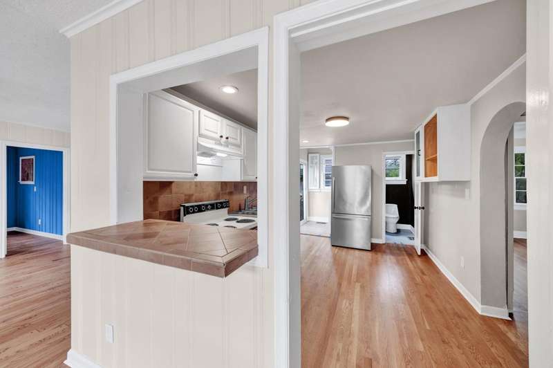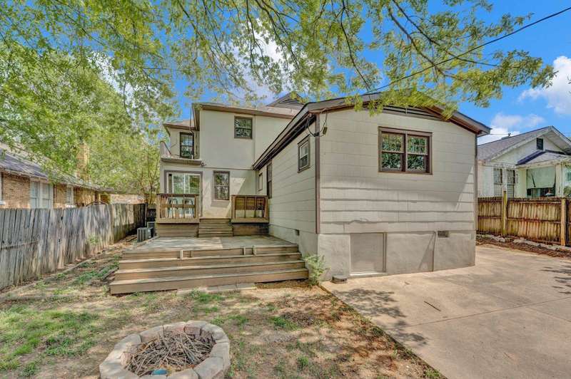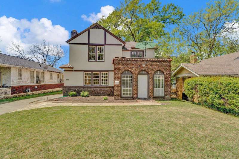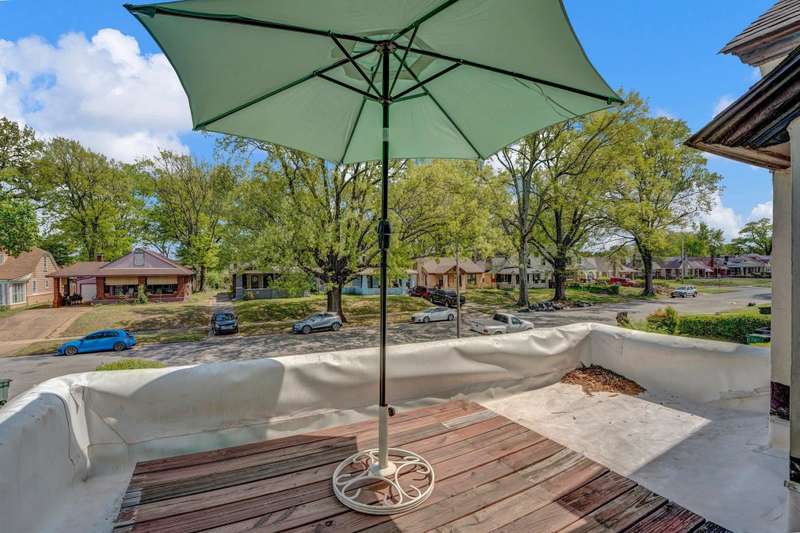 This Vollintine-Evergreen home with 4 beds and 1 1/2 baths has a unique blend of architectural styles that makes it charming and distinctive. The downstairs bedroom could be flex space/office. From the brick, enclosed front porch/entry (14'x10') with brick floor, it features new and restored hardwood floors, fresh interior paint, and individual features that give it character: arched doorways, wall niches, large windows, and upstairs balcony add to this sunlit beauty's unique character. Kitchen opens to a large den area. Details include French doors, built-ins, separate laundry room. There are permanent attic stairs. 2018 HVAC, 2018 roof. Stainless fridge and washer/dryer stay but are not warranted. Multi-level deck in the backyard is perfect for morning coffee or dinner with the sunset. Close to Rhodes College, Overton Park, The Memphis Zoo, the St. Jude complex, and the downtown Memphis area. Located around the corner from Memphis' oldest Blues Bar.