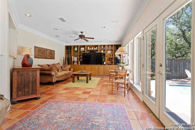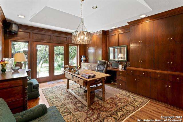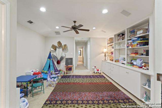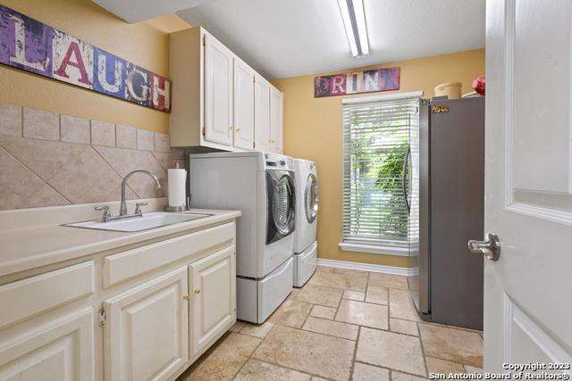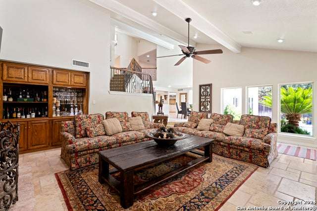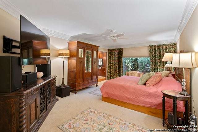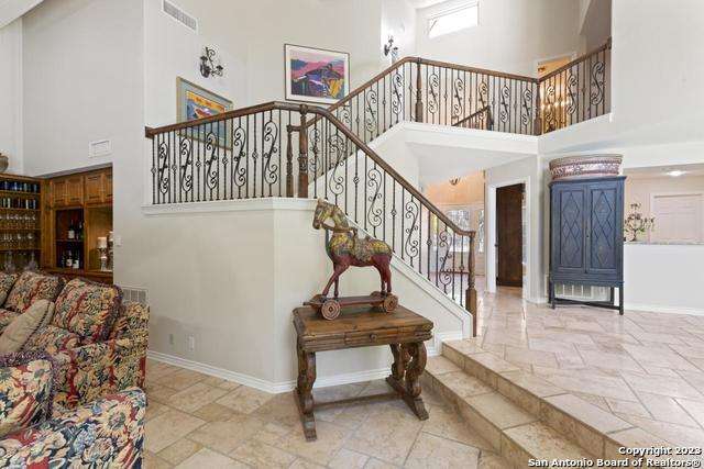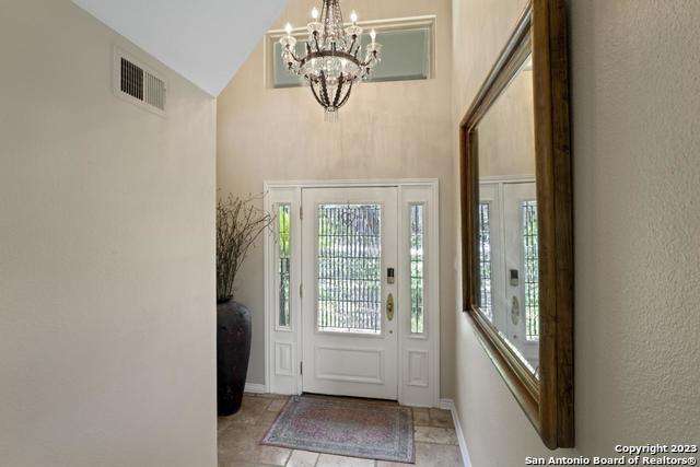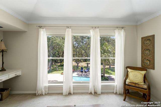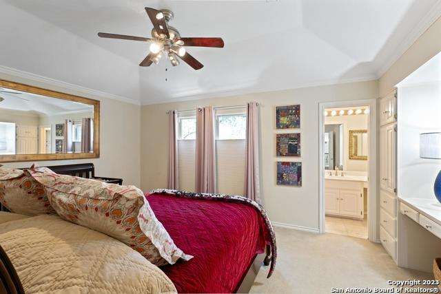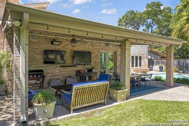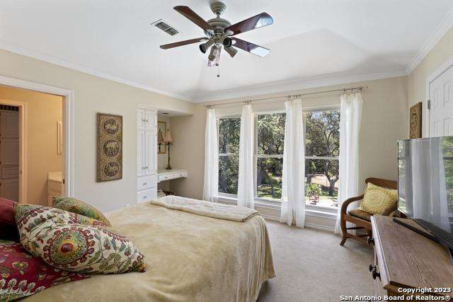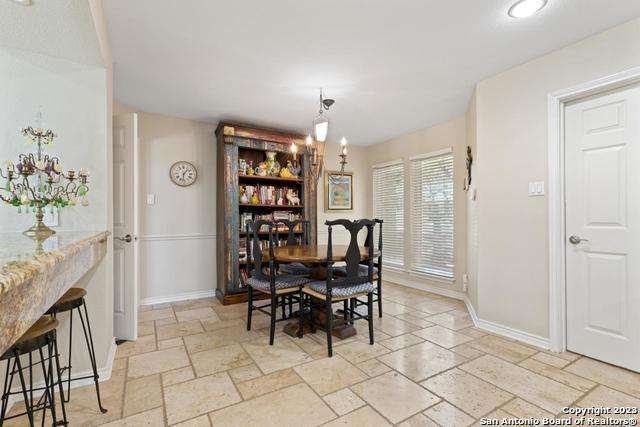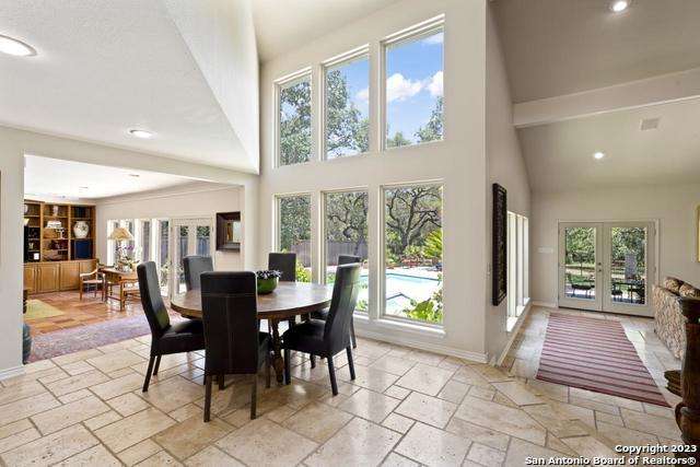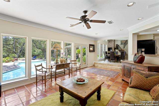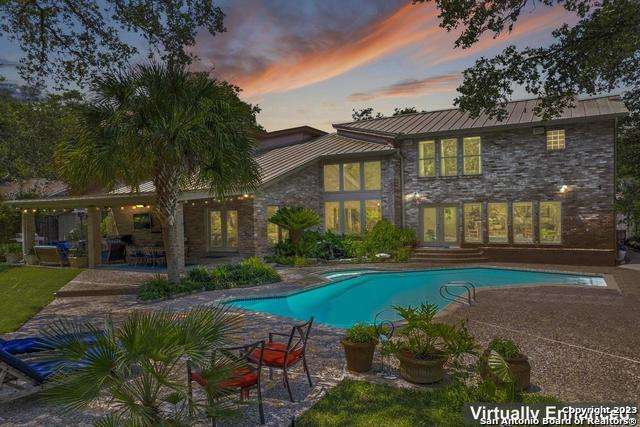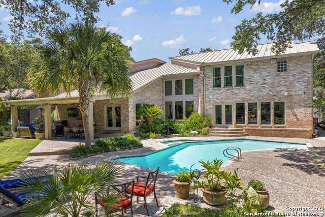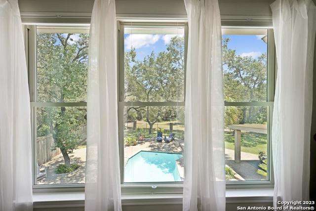 Experience the epitome of countryside living nestled within Loop 1604! This charming residence seamlessly combines comfort, space, and natural beauty alongside a tranquil greenbelt. The interior features an inviting layout that connects living areas bathed in sunlight and peaceful views. An open kitchen with sleek appliances and ample counter space flows into a dining area overlooking a serene backyard oasis. Step outside to find a sparkling pool surrounded by lush landscaping and a peaceful koi pond, creating a perfect setting for relaxation. The primary bedroom suite offers a peaceful retreat with a luxurious en-suite bathroom and office. With four bedrooms and three and a half bathrooms, including the allure of a pool overlooking greenery, this home blends convenience with natural beauty. Enjoy flexibility with the option to convert a large bedroom into two separate rooms. Select furnishings are available for purchase, simplifying your move-in process. Discover the ideal balance of comfort and nature just minutes from the Medical Center, USAA, and premier shopping destinations.