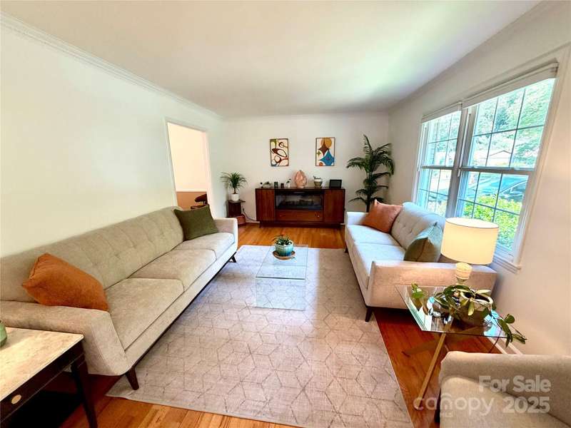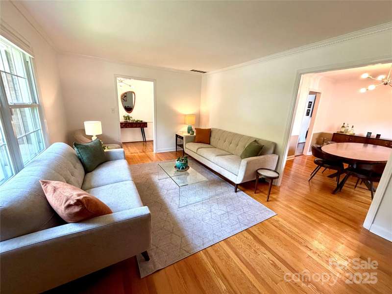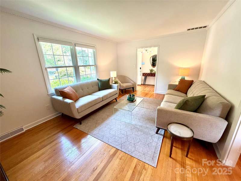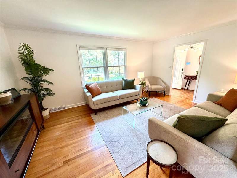 Absolutely sensational mid-century modern brick ranch nestled in the desirable Coventry Woods neighborhood! This rare 4 bedroom 2 bath home sits on a spacious 0.28 acre wooded lot and blends modern updates with timeless character. Enjoy stylish wood flooring, an oversized updated kitchen and thoughtful finishes throughout. This home's curb appeal is undeniable and the expansive backyard-surrounded by mature trees & overlooked by a relaxing screened porch-offers the perfect setting for outdoor entertaining. Freshly painted interior, updated primary bath, upgraded electrical (2023), encapsulated crawlspace (2023) & new HVAC (2024). Refrigerator, washer and dryer are also included. Comforting, inviting & located just 10 minutes from Uptown Charlotte with easy access to grocery stores, shopping, entertainment, restaurants and Independence Freeway. A rare find with charm, convenience and spacedont miss it!