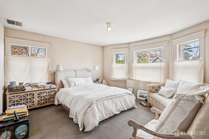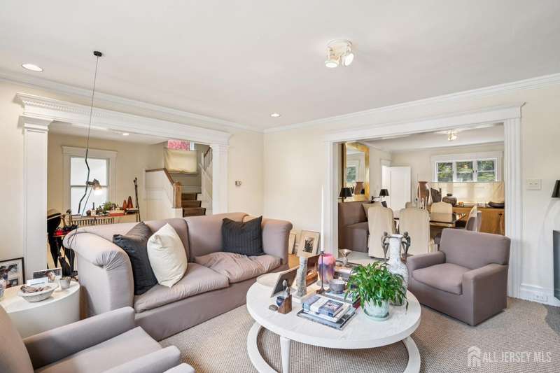 Beautiful Victorian-style Colonial featuring a spacious entry foyer, living room with wood-burning fireplace, and formal dining room. The eat-in kitchen boasts a Sub-Zero refrigerator, double wall oven, and center island cooktop. Enjoy the bright Florida room with windows on three sides. Upstairs includes 3 bedrooms, including a primary suite with dressing area, built-in closets, and full bath. The third floor offers two additional rooms perfect for guests or storage. Finished basement with recreation room, full bath, laundry, and storage. Additional features include central air, detached 2-car garage, carport with side door access, and driveway parking. Convenient location near buses, shopping, New Brunswick trains, hospitals, and Rutgers University.
