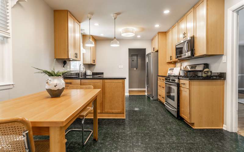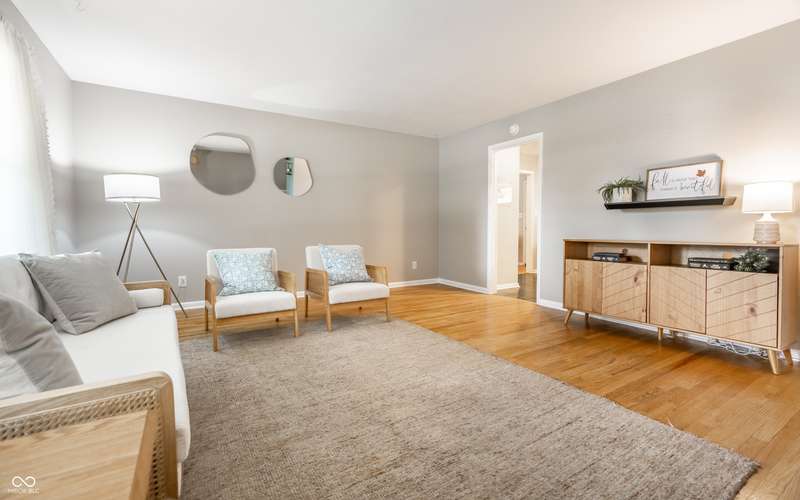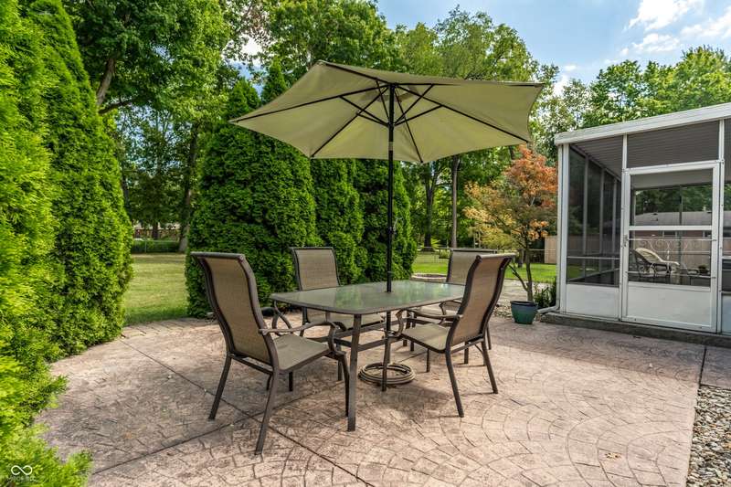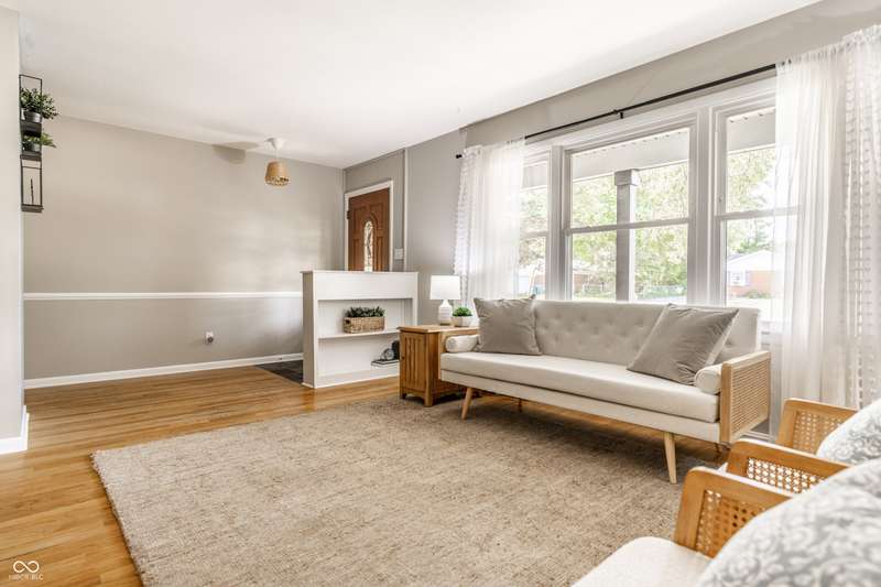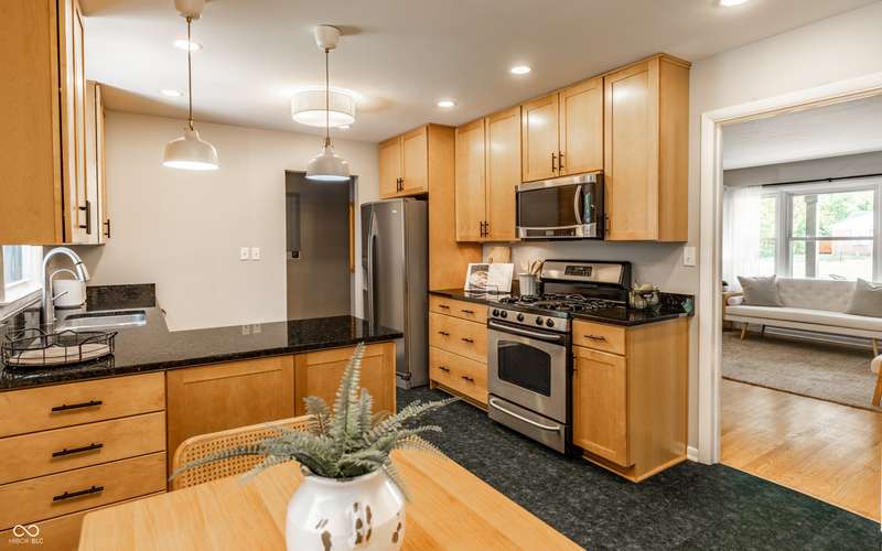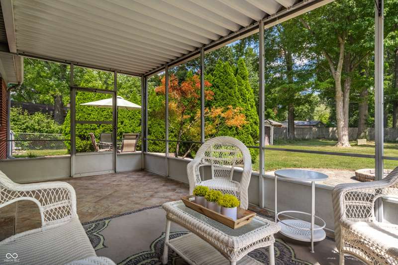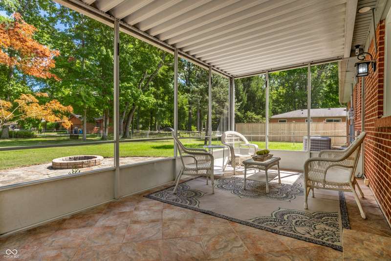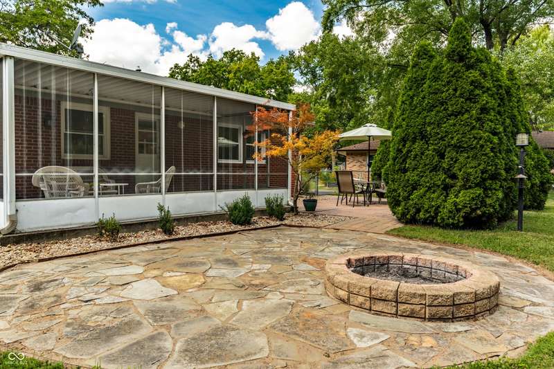 Welcome home to this beautifully updated brick ranch offering the perfect blend of classic charm and modern upgrades. Featuring Beautiful Hardwood Floors throughout, this spacious home boasts two separate living areas, ideal for entertaining or relaxing with family. The remodeled kitchen is a true showstopper, equipped with high-end Aristocrat maple soft-close cabinets, stunning granite countertops, and stainless steel appliances - including a gas range, oven, and Bosch dishwasher. Updated main bathroom, where you'll find a luxurious walk-in glass block shower with dual shower heads and cozy heated tile floors. Step outside to your private backyard oasis - complete with a large screened-in patio, stamped concrete patio, flagstone fire pit, and a spacious fenced-in yard perfect for pets, play, or outdoor gatherings. Convenient location, close to great Restaurants, Parks, Keystone at the Crossing and Downtown Indy. Don't miss your chance to own this move-in-ready gem that combines timeless character with today's must-have features.