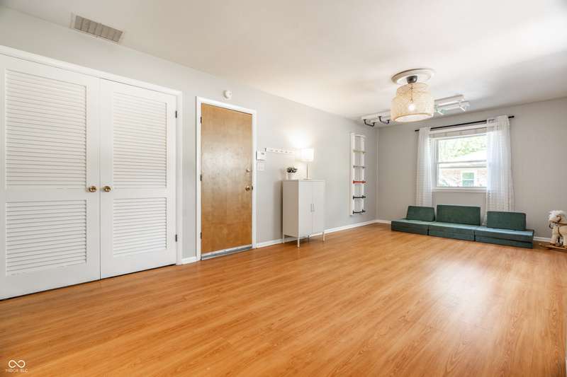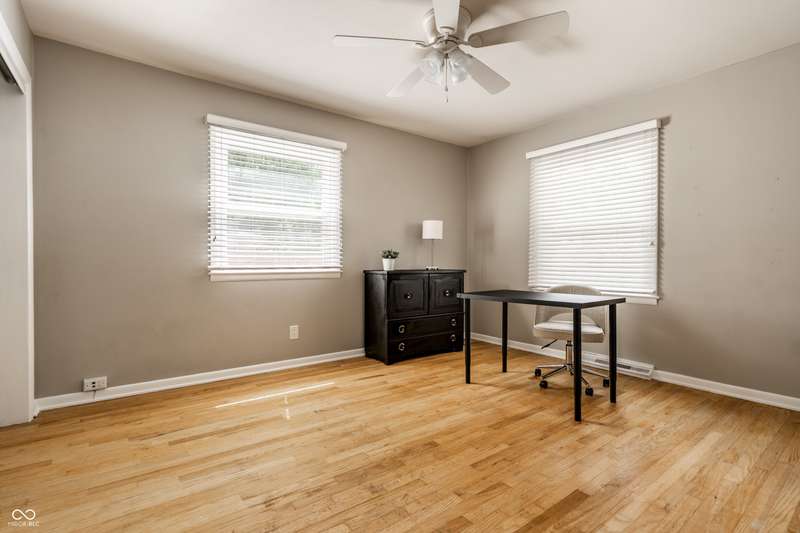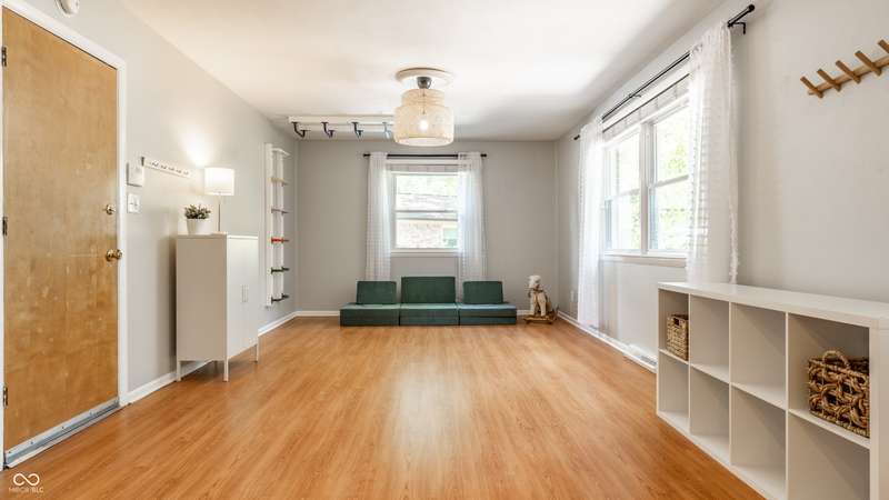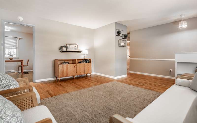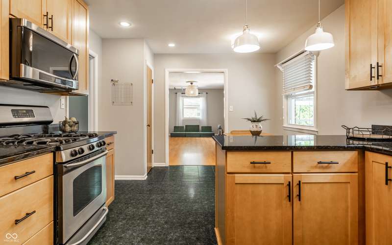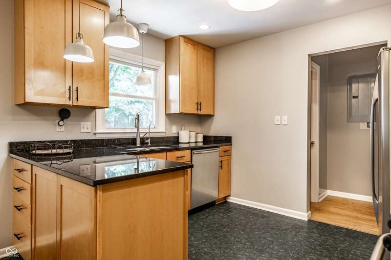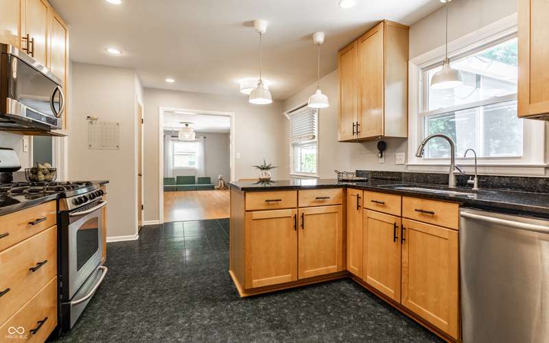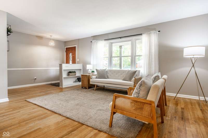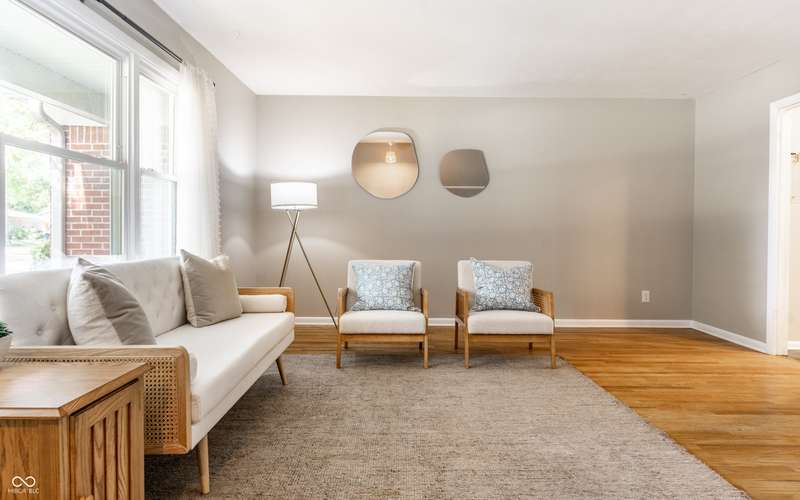 Welcome home to this beautifully updated brick ranch offering the perfect blend of classic charm and modern upgrades. Featuring Beautiful Hardwood Floors throughout, this spacious home boasts two separate living areas, ideal for entertaining or relaxing with family. The remodeled kitchen is a true showstopper, equipped with high-end Aristocrat maple soft-close cabinets, stunning granite countertops, and stainless steel appliances - including a gas range, oven, and Bosch dishwasher. Updated main bathroom, where you'll find a luxurious walk-in glass block shower with dual shower heads and cozy heated tile floors. Step outside to your private backyard oasis - complete with a large screened-in patio, stamped concrete patio, flagstone fire pit, and a spacious fenced-in yard perfect for pets, play, or outdoor gatherings. Convenient location, close to great Restaurants, Parks, Keystone at the Crossing and Downtown Indy. Don't miss your chance to own this move-in-ready gem that combines timeless character with today's must-have features.