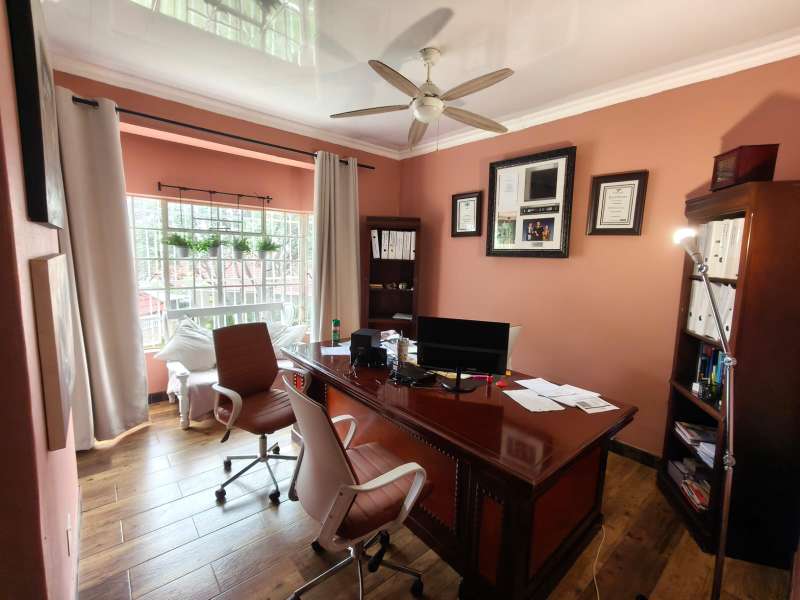 This spacious 4-bedroom house is perfect for a large family. It has 2 bathrooms and a separate guest toilet. Enjoy two cozy lounges, a dining area, and a big kitchen with a scullery and laundry. The main bedroom opens to a private balcony – ideal for relaxing. The home also offers a lovely entertainment area by the swimming pool, plus a store room, carports for 4 cars, and a double garage. Safety is top priority with an electric fence, cameras, and a Jo-Jo tank for water backup. There is also domestic accommodation with its own bathroom. Bonus: A neat 1-bedroom flat with a kitchen, dining, bathroom, and patio – perfect for offices or to rent out for extra income. Don’t miss out on this amazing property with space, comfort, and great value!