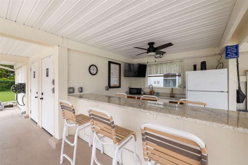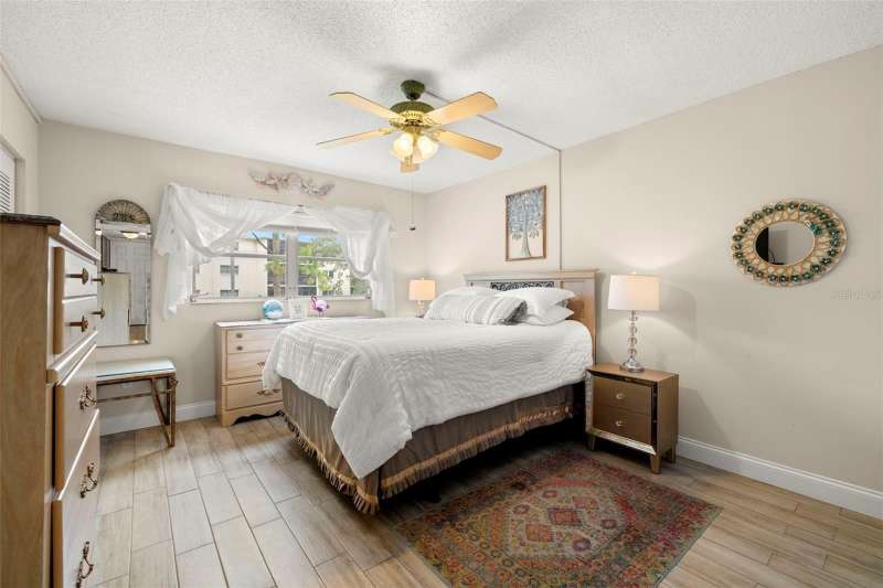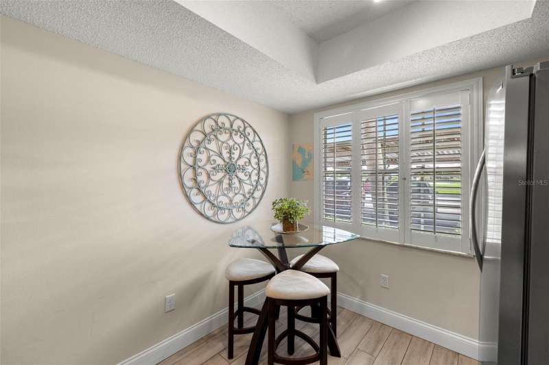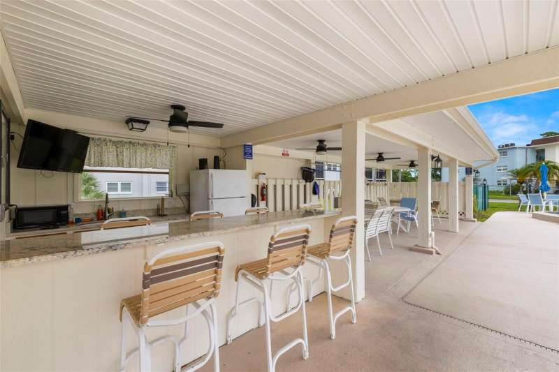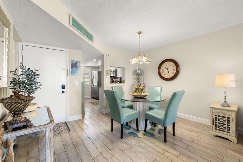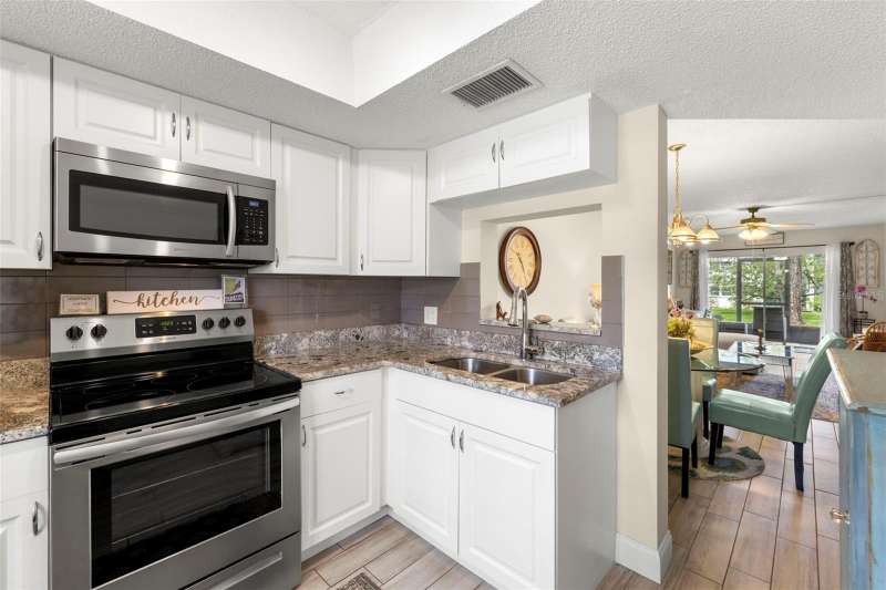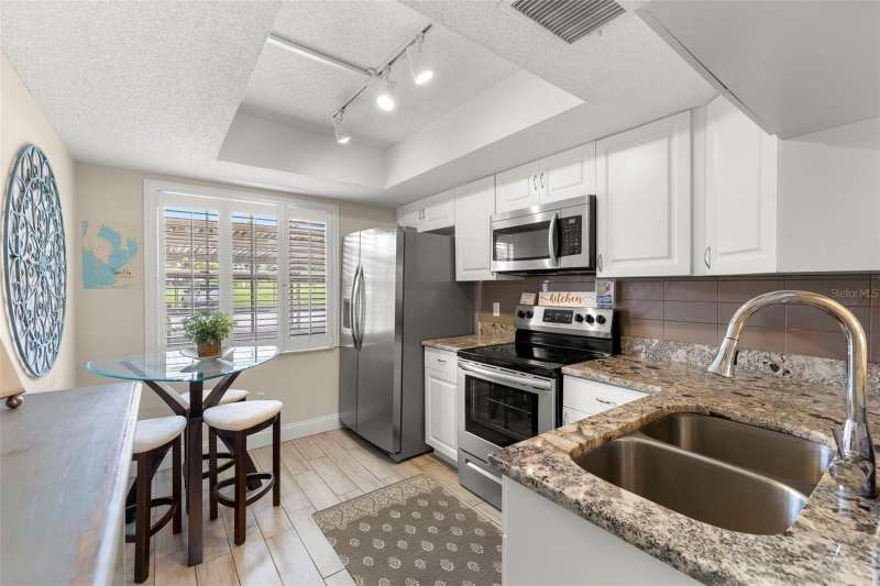 Welcome to easy living in the highly desirable 55+ community of Heather Ridge, located in the heart of Dunedin. This ground-floor condo offers a bright and welcoming retreat with stylish updates all tucked within a non-flood zone (X), meaning no flood insurance is required. As you arrive, enjoy the convenience of a covered parking space just steps from your front door. Inside, an open-concept design welcomes you with ceramic wood-look tile flooring that flows throughout the space. The light and airy kitchen features granite countertops, a double stainless steel undermount sink, and stainless steel appliances replaced in 2019. Plantation shutters add a charming touch, while the pass-through window connects the kitchen seamlessly to the dining and living areas. The spacious bedroom offers two large closets and easy access to an updated bathroom with a walk-in tiled shower and granite-topped vanity. Sliding doors from the living room lead out to a screened-in patio, perfect for enjoying your morning coffee or relaxing with a good book in the evening. Heather Ridge residents enjoy a vibrant, amenity-rich lifestyle with a heated pool, outdoor kitchen, shuffleboard courts, and a covered picnic area—all just a short stroll from your unit. Monthly HOA fees include cable, water, sewer, trash, building insurance, exterior maintenance, and lawn care. Roof replacements are built into the HOA budget for added peace of mind—both the flat roof (2014) and mansard roof (2021) are under 20-year warranties. And the location? Truly unbeatable. Just minutes from historic downtown Dunedin, you'll have access to charming boutiques, nostalgic ice cream shops, award-winning breweries, local restaurants, and a year-round calendar of art festivals, concerts, and parades. Hop on the Pinellas Trail or catch sunset views at Honeymoon and Caladesi Islands. You’re also conveniently close to Clearwater Beach, shopping malls, movie theaters, and both Tampa and St. Pete–Clearwater airports. This move-in-ready condo is more than just a place to live, it’s a lifestyle filled with charm and a connection to everything that makes Dunedin one of Florida’s most treasured coastal towns