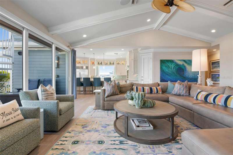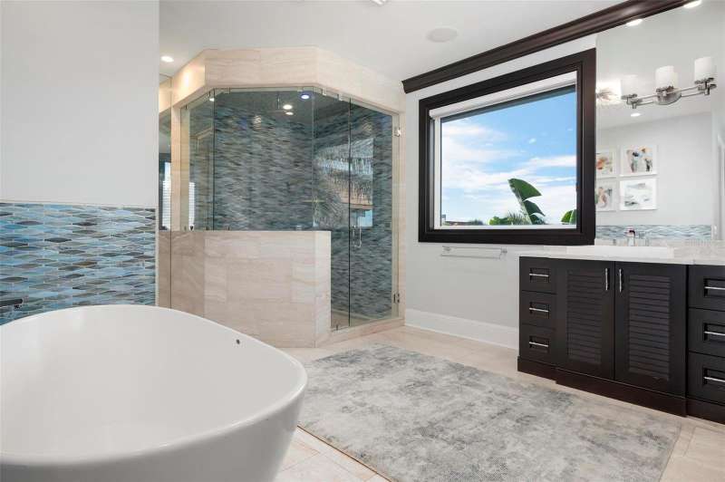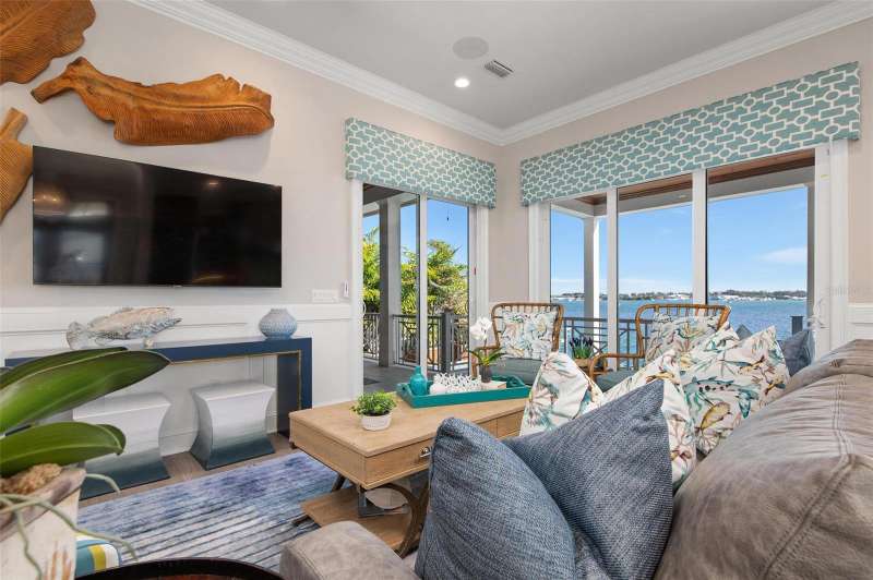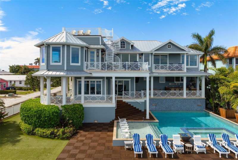 BEACH TO BAY VIEWS AND DIRECT BAYFRONT LIVING- Welcome to Mandalay Bay on Anna Maria Island! The savvy investor has the opportunity to maximize earnings with short-term rentals allowed. This home features a total of 8,747 square feet under roof and spectacular 360-degree views from the gulf of Mexico to the intracoastal waters! Relish the island lifestyle in this bayfront home, three houses to the beach and a short stroll to the azure waters of the gulf of Mexico! This high-end turnkey furnished home offers seven-bedrooms, five well-appointed bathrooms and two half baths. This property shares a rich variety of options for the discerning buyer. The family-oriented buyer can realize their dream of securing a bayfront family retreat while building a legacy for generational wealth or enjoy the income as a vacation rental property. A home built with artful design and decorated features such as stylish upscale finishes. The walls of glass doors showcase breathtaking views of the intracoastal waterfront. Fabulous glass doors from the main living area and almost every bedroom open to spacious balconies for entertaining and relaxing. With nearly 6,000 square feet of living space, the home includes a stylish primary bedroom with an en-suite luxurious bath and a soaking tub, and a walk-in shower/steam room. The home also features two full kitchens featuring beautiful cabinetry, marble countertops and high-end appliances, including gas ranges. This home includes a wonderful theater and game room including a pool table. Outdoors, enjoy the many amenities with a full outdoor kitchen, bar and dining table in the covered porch, a large heated pool, waterfall and spa including poolside seating areas for soaking in the breathtaking scenery. This property is complete with a dock, two boat lifts (20,000 and 7,500 lbs.) and a jet ski lift. Head up to the roof top deck with 360-degree views from beach to bay with plenty of seating. All just a short stroll to the beach, where you can glimpse the sunsets and mesmerizing changing colors at night. This home offers buyers the opportunity to own a fabulous one of kind bayfront estate that is a popular vacation rental. The home had $500,000 in new upgrades to the home, including 5 central heat and air units, new counter tops, new flooring, new garage doors, new tile around the pool, all new paint and wallpaper, light fixtures, furnishings, new washer and dryer and a beautiful home theater and game room for everyone to enjoy! Situated near the sugary sands of Anna Maria Island with the beautiful character of timeless architecture, this is a true bayfront oasis. Don’t miss an amazing opportunity to make this serene island sanctuary your own. Call for your private showing today!