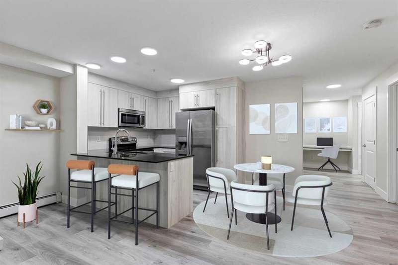 LARGE TWO BEDROOM TWO BATHROOM PLUS DEN in a popular Mahogany complex. NEW kitchen cabinets, NEW luxury plank, NEW carpet in the bedrooms, NEW dishwasher, kitchen sink, New blinds and light fixtures, freshly painted throughout!! This unit has open layout with huge windows which bring lots of natural light. Cozy private patio for BBq nights and summer time chillouts. Functional kitchen. Good sized bedrooms and even space for your own office! All these in a well cared for complex and close to absolutely everything- Mahogany Lake, Westman Village, South Campus, shopping, dining and transportation. Great for the first time Buyers or Investment