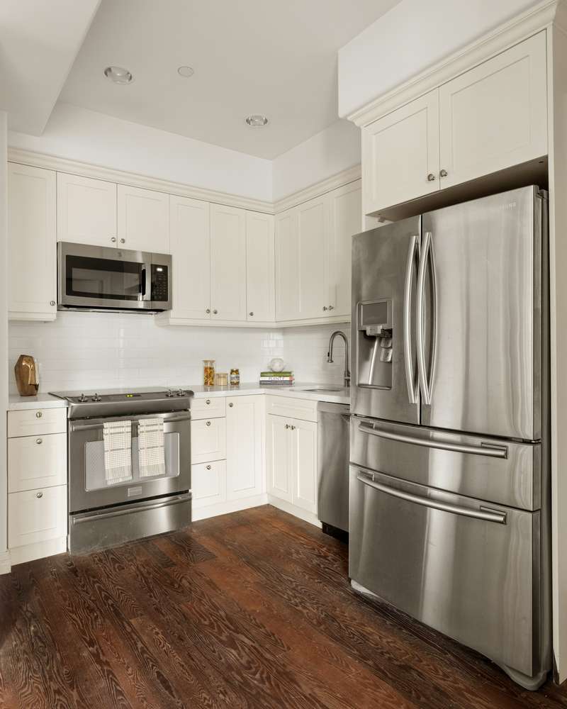 The expansive living room offers ample space for both dining and relaxation, with City Quiet windows ensuring a peaceful retreat from the city. The large bedroom comfortably accommodates a king bed, features an extra deep closet, and opens to your own private balcony.