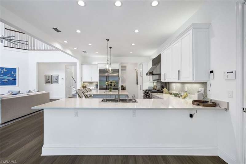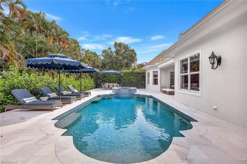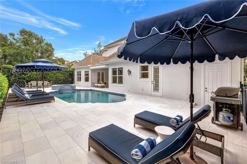 Welcome to 1427 Hemingway Place, a captivating retreat nestled in the heart of Naples, FL. This exquisite property boasts timeless elegance and modern comforts, offering the perfect blend of sophistication and relaxation. Step into luxury as you enter this meticulously designed French Quarter home featuring 4 bedrooms and 4.5 bathrooms spread across 4,067 square feet of living space. The open floor plan seamlessly connects the spacious living areas, ideal for both intimate gatherings and grand entertaining. Indulge your culinary passions in the chef's kitchen, equipped with top-of-the-line appliances, quartz countertops, and ample storage space. Enjoy casual meals in the breakfast nook or host formal dinners in the elegant dining area. Retreat to the master suite, a serene oasis complete with gorgeous views of the extended pool patio. The en-suite bathroom offers a spa-like experience, featuring a luxurious soaking tub, separate shower, and dual vanities. Outside, the lush landscaping