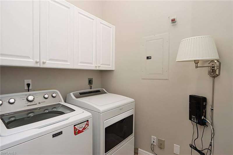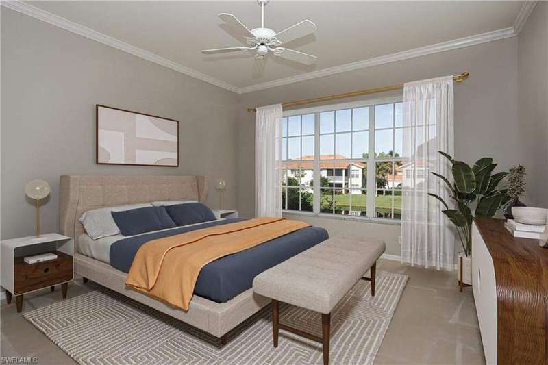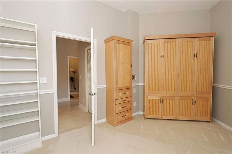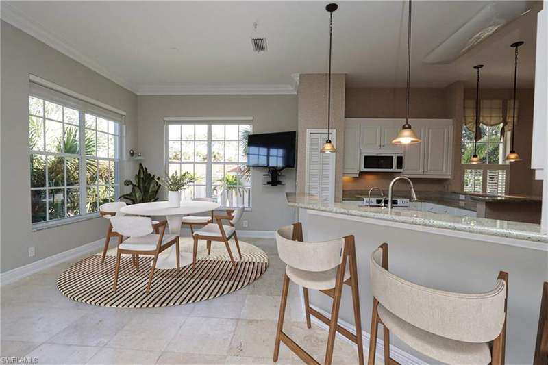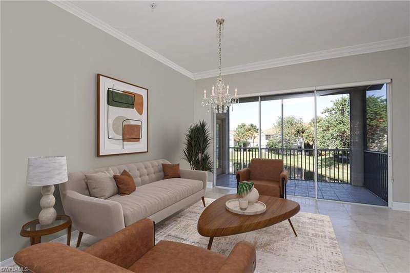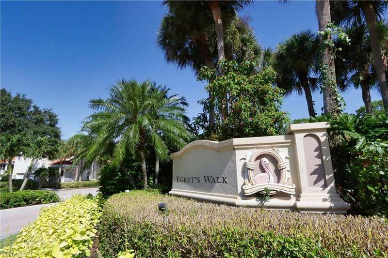 Nestled in the serene Egrets Walk community of Pelican Marsh, this charming 2nd-floor condo offers tranquil lake views from a screened-in lanai. With 3 bedrooms, 2 baths, and a 1-car garage, this well-appointed 1,800 square ft. residence provides ample space for comfort and relaxation. Upgrades include a new HVAC system, light granite countertops in the kitchen, a Kinetico water filtration system in kitchen, and beautiful tile floors in common areas. Bonus features: The third bedroom includes a built-in queen Murphy bed and there is a handicap lift chair, which the owner will leave. (Or can be removed as needed). Egrets Walk residents enjoy access to the Pelican Marsh common clubhouse (Golf membership and the Golf clubhouse are separate) as well as two common areas within Egrets Walk, each with a saltwater pool, one with community gym. Egrets Walk is the only community within Pelican Marsh with direct access to Mercato and its many restaurants and shopping, a movie theater as well as Whole Foods, Trader Joe's, and Nordstrom Rack. Pelican Marsh is a stunningly maintained, and centrally located community, where walking paths wind throughout, and golf views are abundant. The Pelican Marsh community clubhouse boasts a newly remodeled restaurant, vibrant tennis- and pickle ball program, bocce ball, a state-of-the-art fitness facility, and spa rooms for massages and much more. PLEASE NOTE: This condo has an annual renter, with a contract until December 31st, 2025. Potential buyers must honor rental contract, and will receive rental proceeds after closing.
