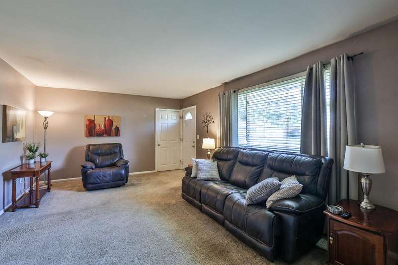 Charming brick ranch located just minutes from shopping, the interstate, and a variety of dining options. This home features a spacious living room with abundant natural light and a private backyard with a patio and wooded view, perfect for relaxing or entertaining. All appliances stay, including washer and dryer, making your move-in seamless. A large family room with a dry bar area provides extra space for gatherings. Updated bathroom and vinyl replacement windows enhance comfort and efficiency. A wonderful combination of convenience, warmth, and practicality ready for you to make it your own.