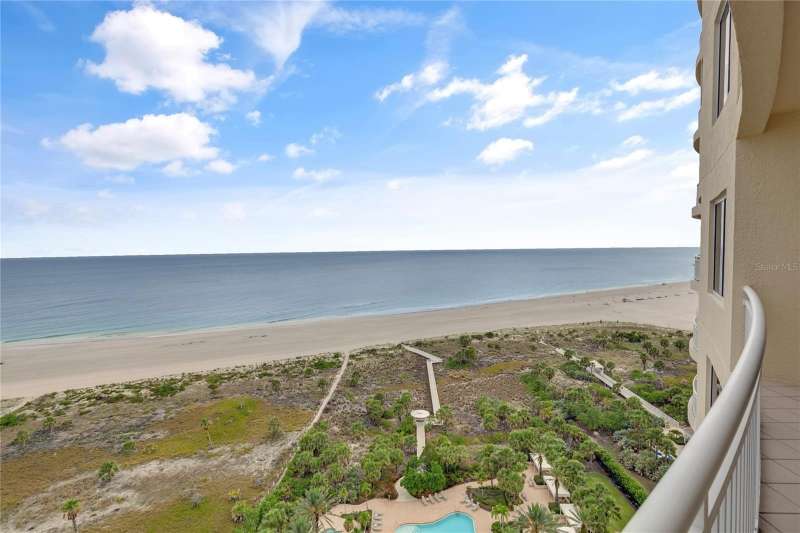 Welcome to your dream home in the Meridian on Sand Key. This luxury beachfront condo is one of the larger units at the Meridian, encompassing 2,288 sq ft which includes 3 bedrooms and 2.5 bathrooms. Located on the seventeenth floor and facing West this unit enjoys unparalleled sunsets and breathtaking views of the Gulf of Mexico AND the Intercoastal Waterway; found in very few Meridian units! newer AC with UV light, new hot water heater, water leak detection system, Whirlpool appliances and much, much more! As the homeowner, you'll enjoy access to a beautiful resort-style pool area featuring cabanas, a grilling area, outdoor dining spaces, and a relaxing spa. Security and peace of mind are assured with a 24/7 guard at the gate and an on-site concierge, fully equipped gym, complete with sauna and steam room, or indulge in leisure activities in the billiard room and cozy library. Tennis enthusiasts will appreciate the tennis court, while business professionals can make use of the executive conference room and lounge. Best of all, you have direct access to the pristine beach, just steps from your door. Situated on Sand Key, the Meridian offers a prime location with world-class shopping, dining, and services right at your doorstep, including the renowned Columbia Restaurant. Nearby attractions such as Sand Key County Park and Clearwater Sailing Center provide endless opportunities for outdoor recreation. You're just minutes from downtown Clearwater Beach, offering a vibrant mix of excitement and relaxation. Plus, with easy access to SR 60, travel to inland areas and Tampa is a breeze. The Meridian offers not just a home, but a lifestyle of elegance, comfort, and unparalleled quality. The opportunities to own a unit at the Meridian are rare and to own one of the larger units even more so. Don’t miss your chance to secure this piece of paradise.