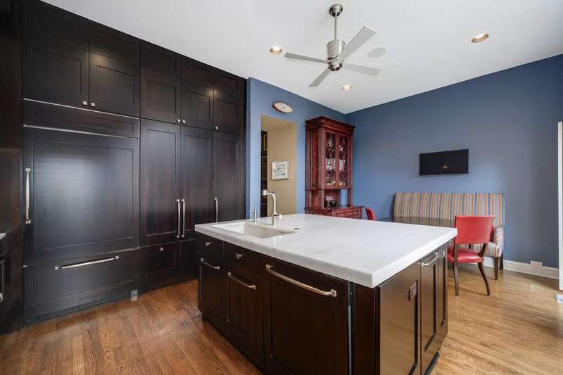 This Italianate style, single family row home was designed and built by Chicago's own very notable architect, Jim Nagle. Featuring a three-story central atrium, bringing in amazing natural light, this home is truly one of a kind. Absolutely prime Lincoln Park block, walking to all of the neighborhood's best offerings at Halsted/Armitage locale and in the Oscar Mayer School district, this home is not to be missed. Three floors above grade, the spacious first floor offers a family room, bedroom, full bath, and a well-appointed wet bar with a wine refrigerator, dishwasher and beverage refrigerator with ice maker. The home has wine storage for 180 bottles. There is an additional sitting/rec room with wood burning fireplace. The back yard has a beautifully landscaped garden and patio with a built-in grill, as well as a two-car garage which offers attic storage. The main living level has high ceilings and a gas fireplace. The east facing eat-in kitchen overlooks the garden and offers a 60" Wolf range with double ovens, a commercial grade hood, warming drawer, plus SubZero refrigeration - all situated around an oversized quartzite island and also has an eat-in dining space. The separate dining room with is perfect for entertaining as is the west facing living room that is situated around a stately fireplace and has wonderful western exposure for fantastic natural light. The top level has three gracious bedrooms and two full baths, along with a separate laundry room. The primary suite has amazing vaulted ceilings, a walk-in closet, and a large updated bathroom. The home is heated and cooled by three separate HVAC zones and two water heaters. Every detail in the home has been beautifully curated and offers beautiful details throughout. Steps away from fabulous shopping, dining, coffee shops, bakeries and Oz Park.