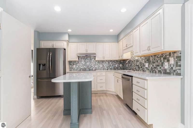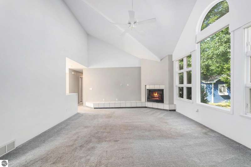 Just minutes from downtown Traverse City and the sparkling shores of East Bay, this beautifully refreshed 3-bedroom, 2-bath home in the desirable Holiday Hills neighborhood blends Up North tranquility with in-town convenience. Recent staging gives the home a fresh, modern look--highlighting vaulted ceilings, abundant natural light, and a cozy gas fireplace.The updated kitchen features stainless steel appliances, quartz counters, and ample storage, and opens to a private side deck--perfect for morning coffee or evening gatherings. The primary suite includes a walk-in closet, spacious shower, dual sinks, and a makeup vanity in the en suite bath, while the partially finished lower level offers flexible space with endless possibilities. Enjoy year-round comfort with central air and peace of mind with a whole-house generator. Plus, you'll have easy access to everything Traverse City has to offer--from biking the nearby TART Trail to exploring local wineries, beaches, ski hills, and parks. Stylish, refreshed, and ready to welcome you home.