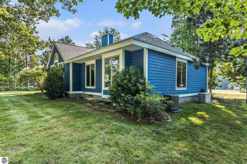 Nestled on a tree-lined street in Traverse City's Holiday Hills, this charming 3-bed, 2-bath home offers comfort and style. A welcoming front porch and maple grove lead into a bright living space with vaulted ceilings, large windows, and a cozy gas fireplace. The updated kitchen features stainless appliances, quartz counters, and plenty of storage. The primary suite includes a walk-in closet, makeup vanity, and spacious shower. Enjoy the private, shaded yard with a side deck--perfect for coffee or gatherings. Includes a partially finished basement with non-conforming bedroom, central air, and whole-house generator. Close to lakes, ski hills, parks, and shopping.