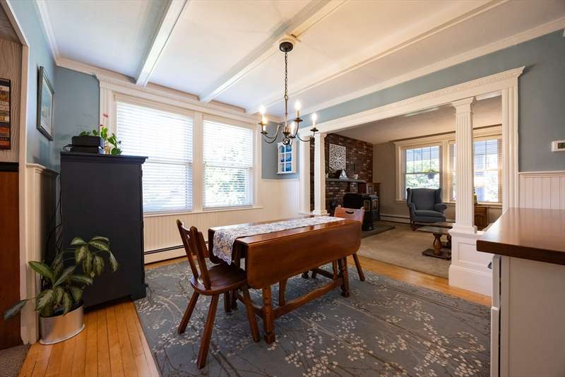 Welcome home to this charming and comfortable haven, set high for privacy and beautiful curb appeal. The inviting front porch with a swing is perfect for morning coffee, evening chats, or simply soaking in the peaceful surroundings. Inside, this home blends timeless craftsmanship with modern updates rich maple floors, classic wainscotting, custom blinds and warm woodwork create an inviting atmosphere throughout. The pellet stove in the living room adds both charm and efficiency, keeping the whole house cozy all winter long.You ll love the new bathroom, custom BI cabinet in the DR and the bonus room off the kitchen that offers flexible space for a home office or playroom. With three spacious bedrooms, ample closets, and a guest bath on the main level, there s room for everyone to feel at home.Tucked away yet close to beaches, schools, and conveniences, this property offers the best of both worlds privacy and proximity. With a garage, solid updates, and undeniable warmth, this is it!
