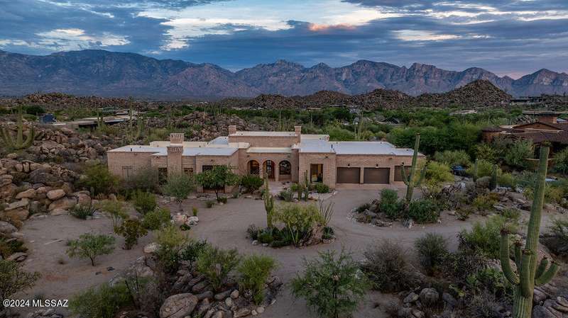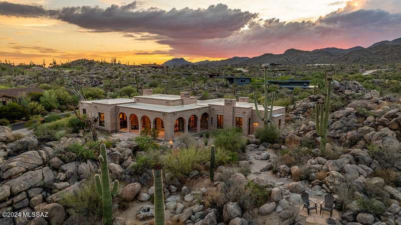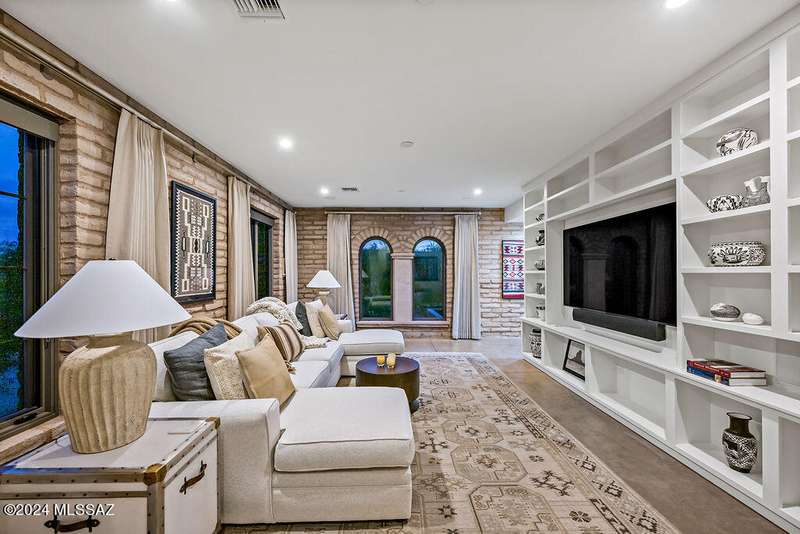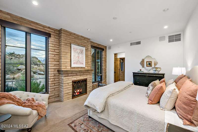 Burnt Adobe Brick Home with Modern Influences in Stone Canyon.Experience refined desert living in this beautifully executed burnt adobe brick home that blends timeless character with modern design. Soft arches, exposed adobe walls, and metal accents pair seamlessly with concrete floors and clean, organic finishes for a minimalist yet inviting aesthetic.Presented fully furnished, the interiors reflect a cohesive modern desert style, allowing for an effortless move-in experience. The kitchen is sleek with a functional layout, generous island and breakfast nook. The mudroom includes a built-in bench, drop zone, and storage closet, while the spacious laundry room provides additional cabinetry, a workstation, and sink.