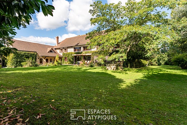 In the village of Beynes, 35 km from Paris, this charming property offers 400 m2 of living space set within a beautifully landscaped 2600 m2 garden, creating a unique living environment, designed to generously accommodate family, friends, and a potential business with independent access.