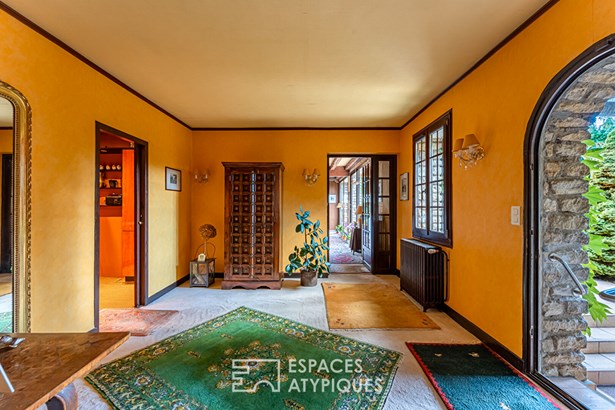 The entrance hall, through its reception area, reveals the warm and authentic feel of the place, reflecting the other rooms on the ground floor, which flow seamlessly yet remain distinct.