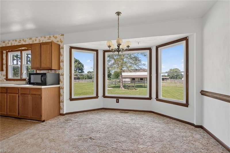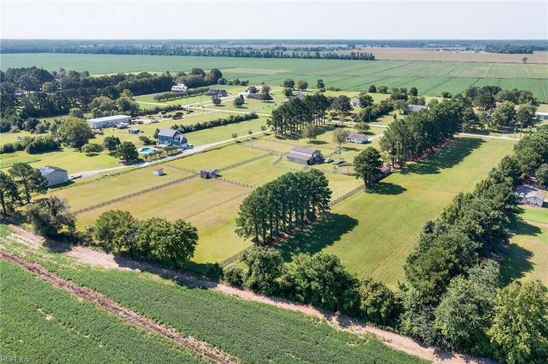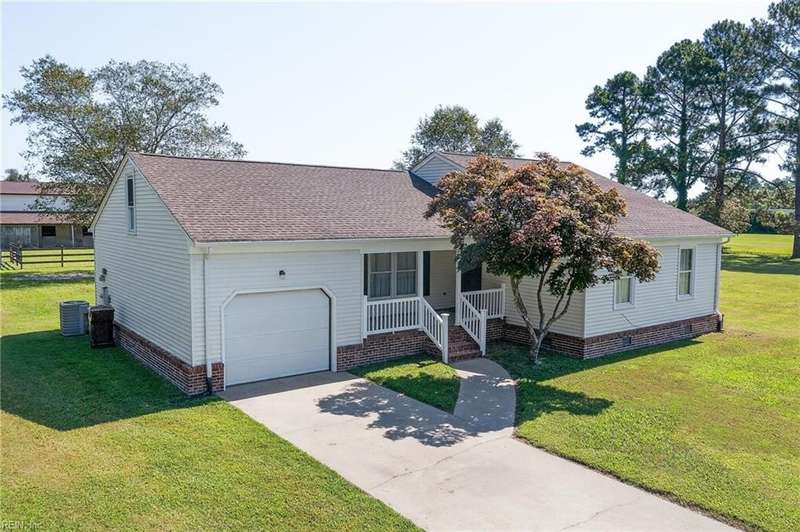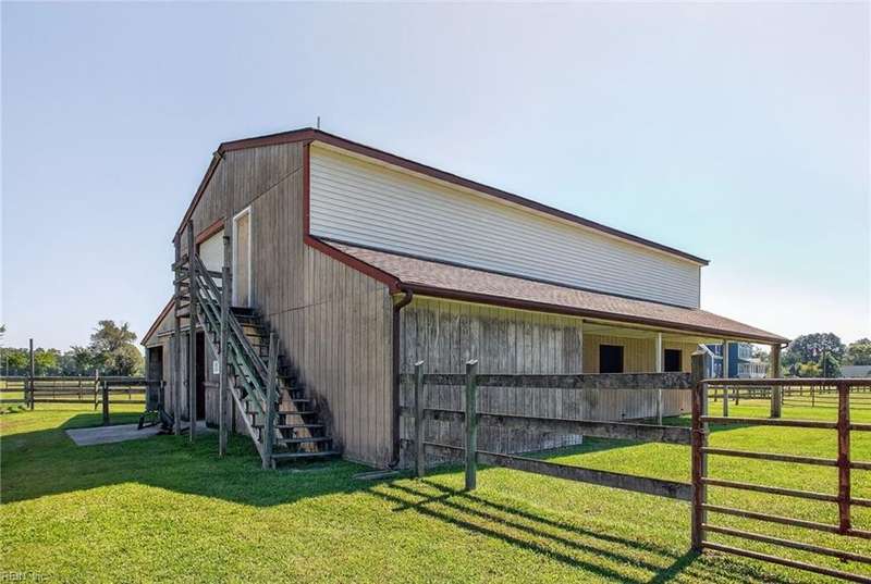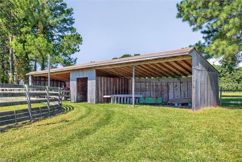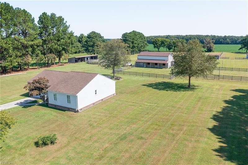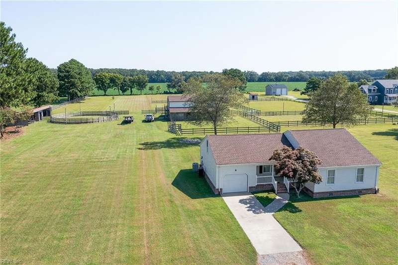 Charming 1982 ranch home with equestrian facilities on 6.526 acres in Chesapeake. The 1,575 sq ft home offers 4 bedrooms, 2 full baths, a primary suite w/ walk-in closet, eat-in kitchen w/ bay window & pantry, cathedral ceiling in living room, full laundry, mudroom & covered porch. Recent updates include windows (2022) & roof (2017). The property includes a 54'x48' barn w/ 7 stalls, air-conditioned tack room, wash/laundry, hot/cold water, storage loft w/ bath, plus a 70'x18' equipment shed. Riding amenities feature a 127'x70' lighted arena, 60' round pen, 3 run-in shelters w/ water & power, fenced pastures & paddocks. Roof on barn replaced 2019. Designed for training, boarding or private enjoyment--this property blends function & charm for horse enthusiasts seeking country living minutes from city convenience.