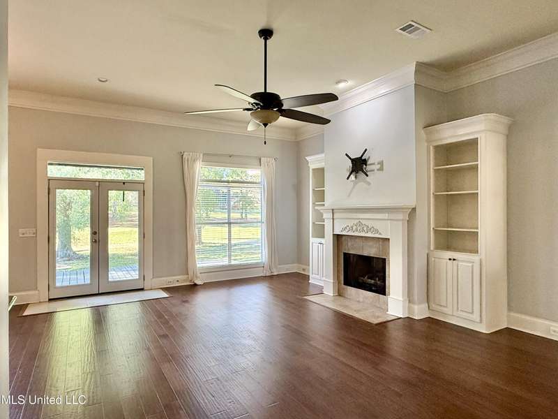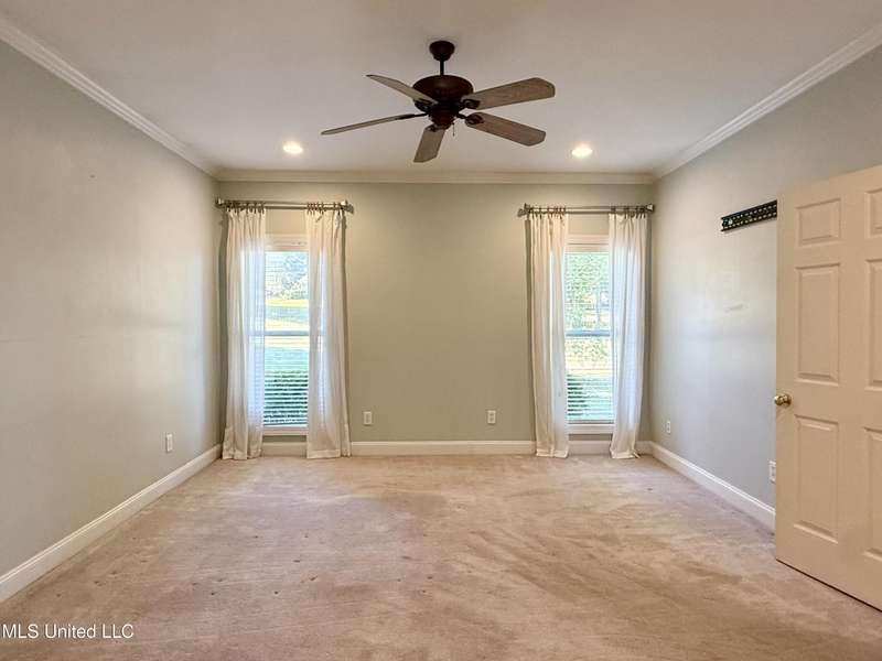 This inviting home sits on the Whisper Lake Golf Course in Madison, MS. It has four bedrooms and two bathrooms, and it's perfectly placed to look out over the 4th tee of the golf course and a water feature, so you get great views right from your backyard. The open layout connects the kitchen, breakfast area, living room, and master bedroom, all with views of the course. It's a great setup for enjoying the fantastic views. The split floor plan includes three roomy bedrooms downstairs, offering privacy for guests or family. Upstairs, there's a bonus room with a closet that can be used as a fourth bedroom, an office, or just extra space depending on what you need. The kitchen features granite countertops, walnut cabinets, and a gas cooktop-stylish and practical for cooking and entertaining. One standout feature is the large laundry room with plenty of storage and a built-in desk section. Outside, the deck overlooks the golf course and makes a great spot to relax or host friends. The washer, dryer, and fridge are included with the home, which is a nice bonus.