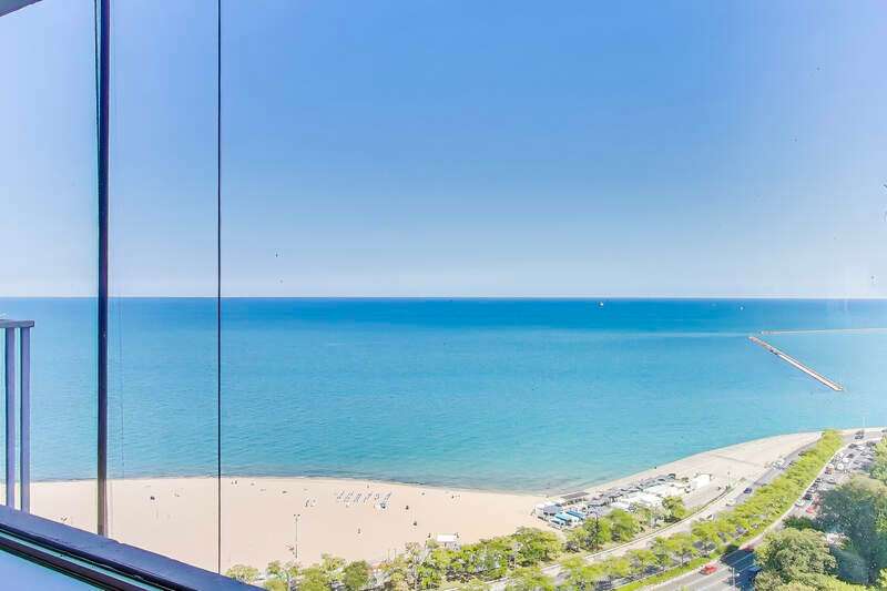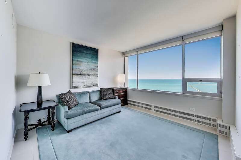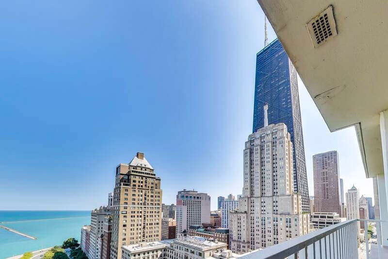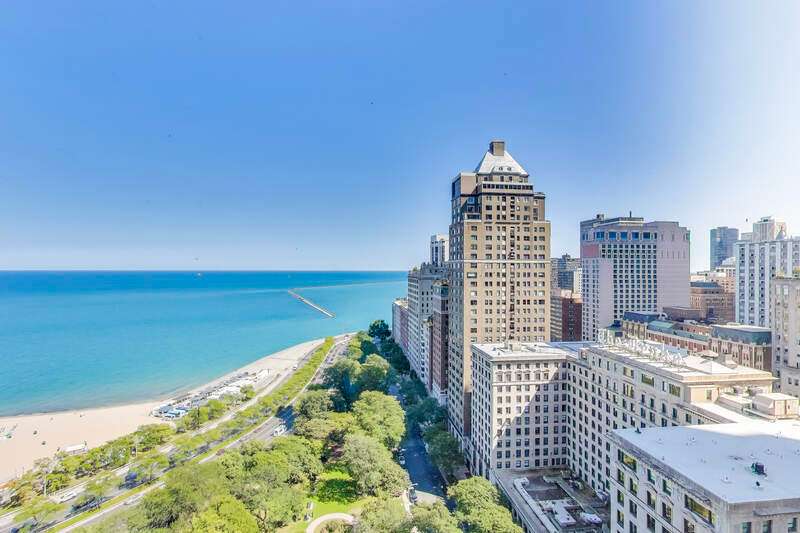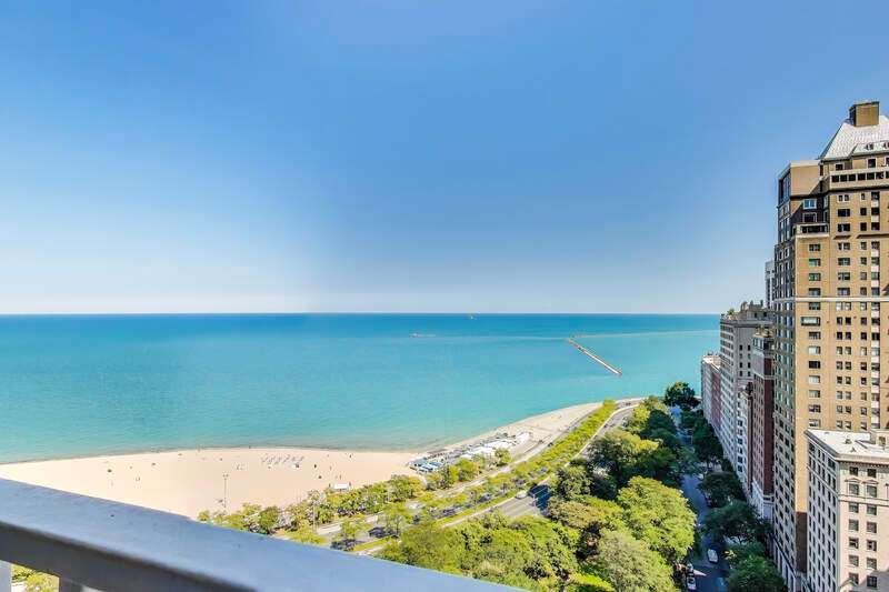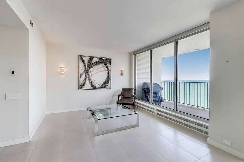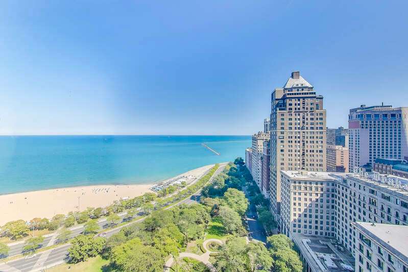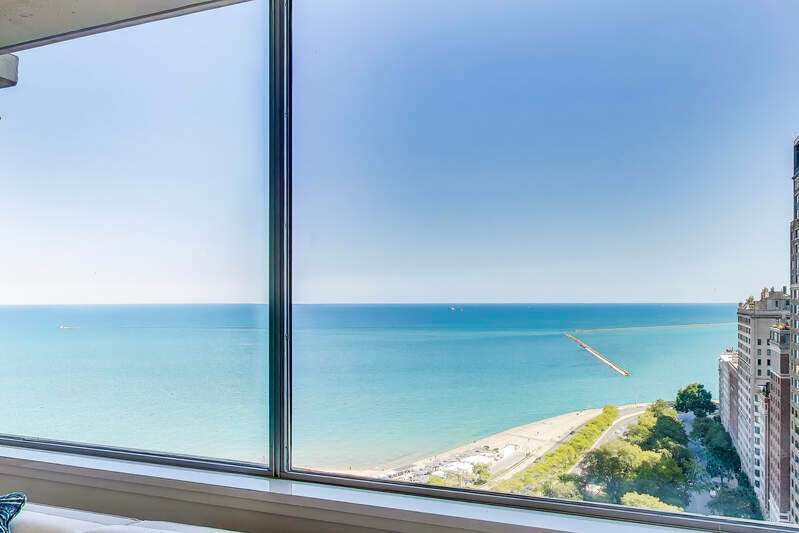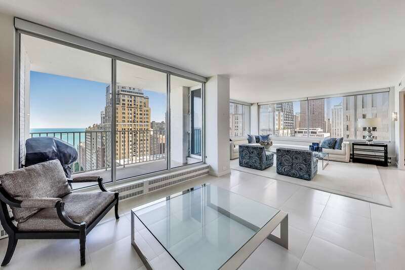 Stunning Lake & City Views from this Corner Gold Coast Condo! This rarely available tier offers breathtaking panoramic views and an unbeatable location at Oak St and Lake Shore Dr. Completely updated with top-of-the-line finishes, this residence features a Sub-Zero refrigerator, Wolf cooktop and double oven, Bosch washer and dryer, and a built-in surround sound system throughout. The thoughtfully designed floor plan includes a den open to the living room, which can be converted to a 3rd bedroom. The primary suite boasts a spa-inspired bath with a soaking tub, glass-enclosed shower, separate water closet as well as a large walk-in closet. An additional walk-in closet in the hallway offers exceptional storage. Step onto the east-facing terrace from the living room to enjoy serene lake views. Expansive picture windows flood the home with natural light, and spacious rooms provide a sense of elegance and comfort. The building offers 24-hour door staff, an indoor pool, a west-facing sundeck, a party room, a state-of-the-art fitness center, garage parking, and guest parking.