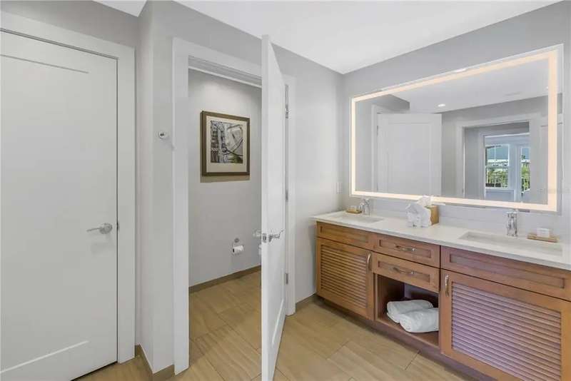 Experience the ultimate in resort-style living at Waterline Villas & Marina, nestled on the picturesque Holmes Beach of Anna Maria Island. This beautifully appointed corner unit with a highly sought after floor plan features a 2-bedroom, 2-bathroom condo that offers a seamless blend of coastal charm and modern sophistication. Enter through French doors into a welcoming hallway that leads you to the spacious guest bedroom, featuring two queen-sized beds and an ensuite bathroom. The inviting atmosphere is perfect for family or friends, with ample room and comfort. As you continue through the unit, you'll be drawn to the heart of the home; the open-concept kitchen and living area. Warm wood accents throughout create a cozy, coastal ambiance. The living room offers a comfortable space to relax and unwind, with access to the expansive balcony overlooking the serene pool and canal. The primary suite is a true retreat, complete with a king-sized bed and an ensuite bathroom for added privacy and convenience. Each area of the condo opens to the balcony, enhancing the indoor-outdoor living experience. This prime location within the building offers views of the canal and intercoastal waters, setting the stage for memorable moments. Waterline Villas & Marina is not just a place to stay; it’s a destination. Enjoy resort-like amenities such as an on-site restaurant, fitness center, and a banquet room. For the water enthusiast, boat slips are available on a first-come, first-served basis, and bicycle rentals make exploring the island a breeze. Part of Marriott's Autograph Collection, this unit benefits from professional management, ensuring a consistent revenue stream year after year. The unit is zoned to allow owners to occupy it for up to 120 days annually, providing a flexible ownership experience with the option to enjoy the property personally or generate income through nightly rentals. With a strong rental history, prime location, and luxury amenities, this condo offers a unique opportunity for both personal enjoyment and investment. Don’t miss the chance to own a piece of paradise at Waterline Villas & Marina.