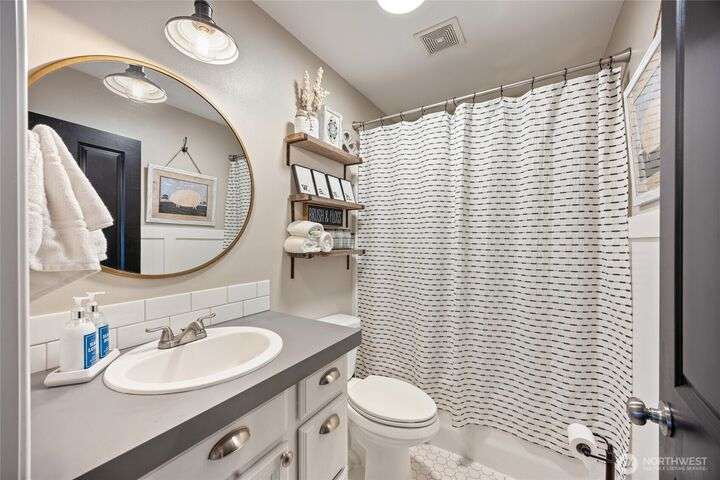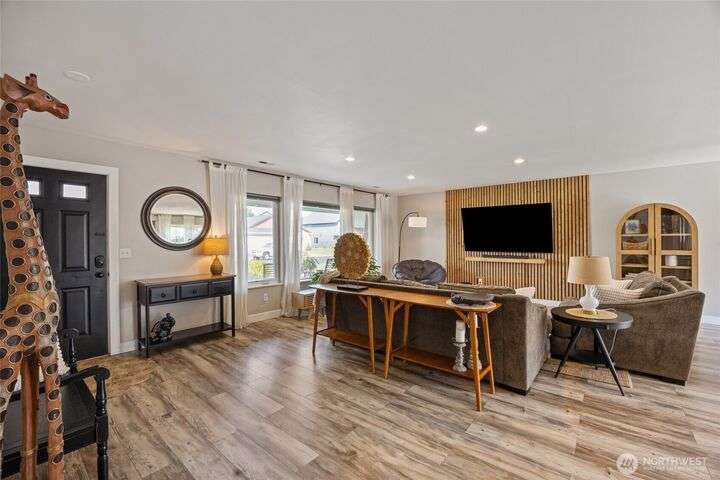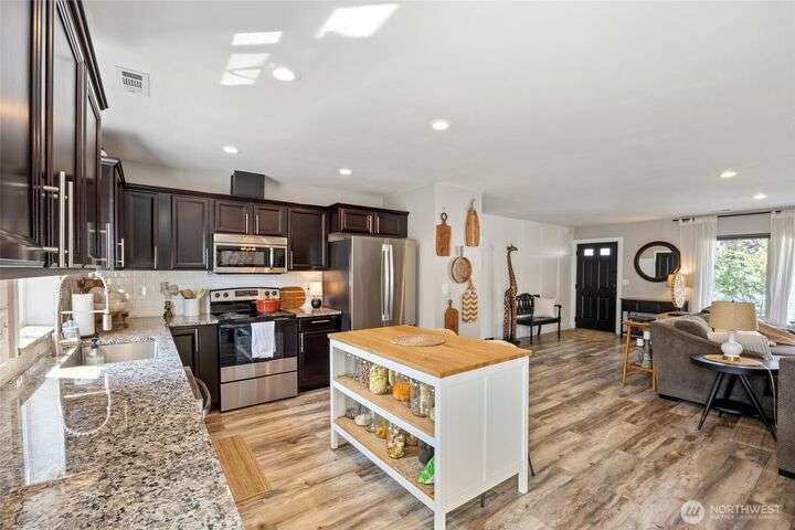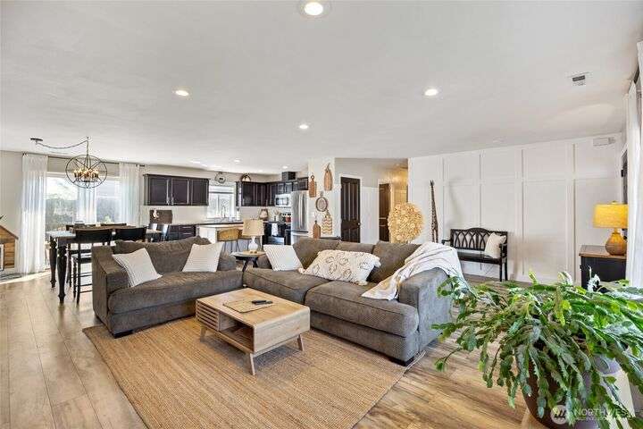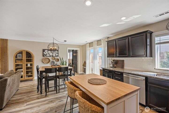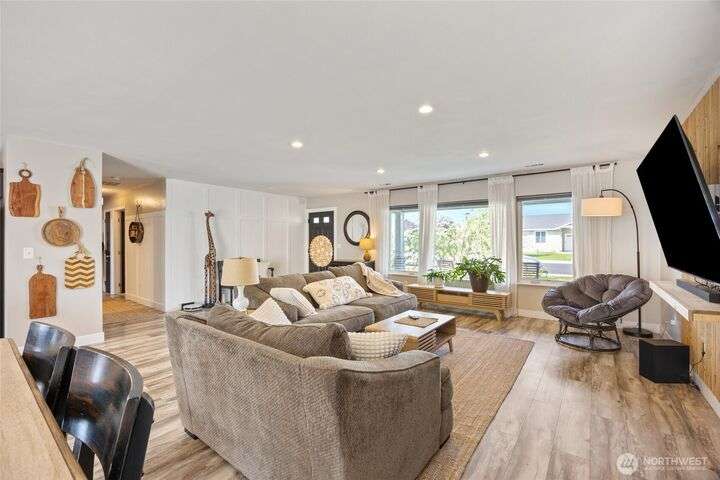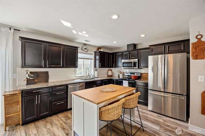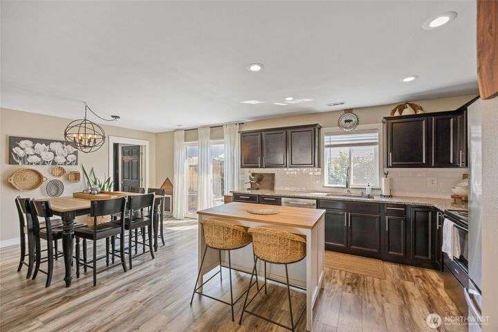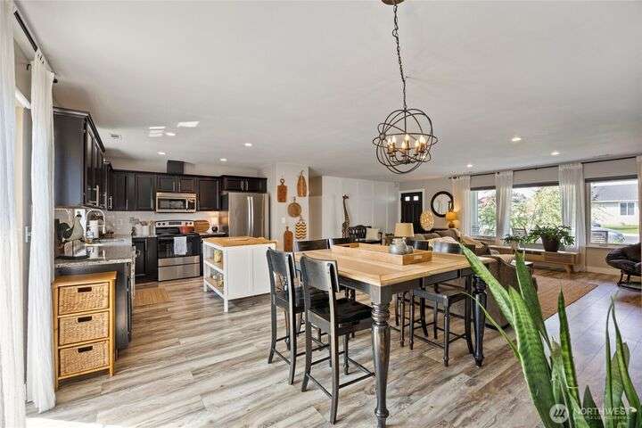 Charming home just down the street from a boat launch & park! Main home square footage is 1,480 but a bonus room off the garage adds another 192sf! Features include mature landscaping, stone accents, and covered front porch. Inside you'll find LVP flooring, large windows w/ custom blinds, stylish accent walls, and kitchen with granite counters, black soft-close cabinets, wood-top island, and stainless appliances. The primary suite offers a walk-in closet, shiplap wall, and updated bath with pendant lighting. Enjoy a finished bonus room off the garage with dog door, fenced gravel area, concrete patio, vinyl fencing, and raspberry bushes. Fresh new carpet just installed. Converted pantry space and great curb appeal make this home a must-see!