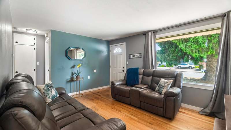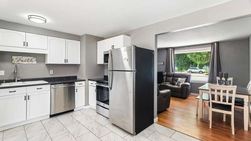Move-in ready home featuring original hardwood floors throughout the main level and a partially updated kitchen with stainless steel appliances and generous cabinetry. The fully finished basement includes a third bedroom and flexible living space ideal for a family room or private suite, complete with its own expansive bathroom/laundry room. Outside, enjoy a fully fenced backyard with a built-in sprinkler system. A one-car attached garage with backyard pull-through access. Conveniently located near restaurants, shops, and services. Motivated Seller. Bring me your offer.