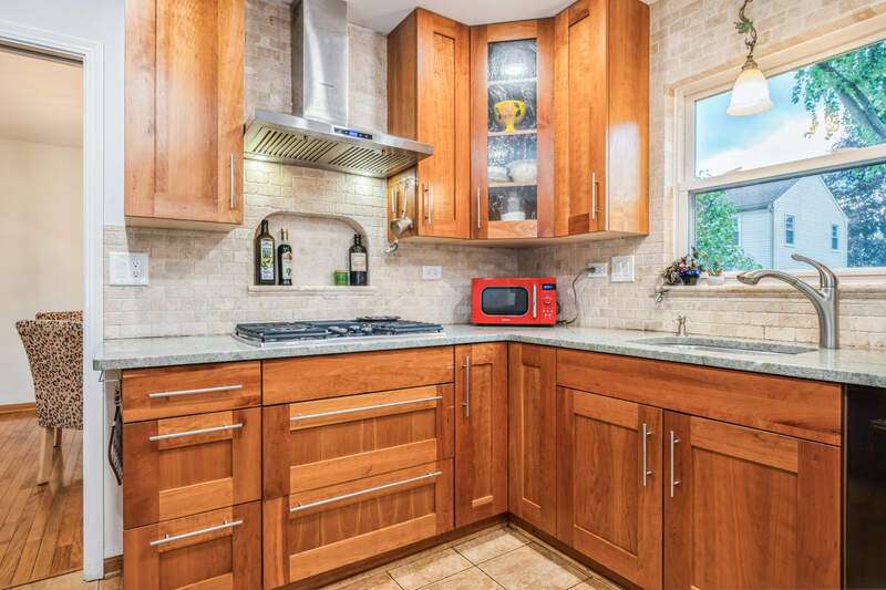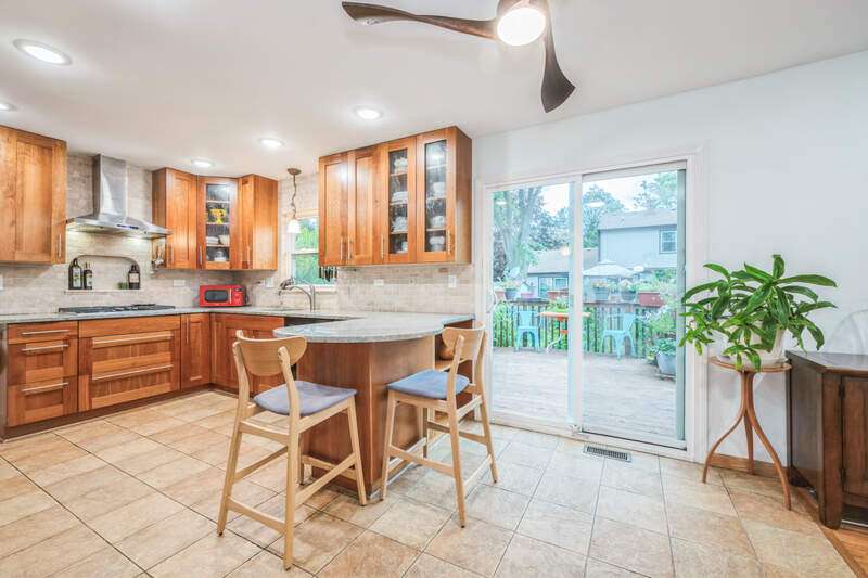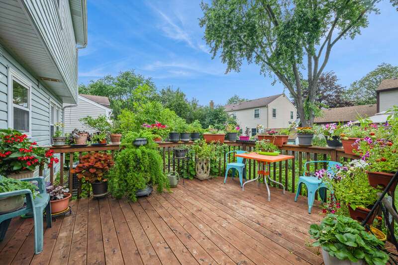 Welcome to this beautifully maintained gem, nestled on a quiet dead-end street in highly sought-after Buffalo Grove, within the award-winning Stevenson High School and District 96 boundaries. This charming two-story home offers a fantastic layout with great space for comfortable living and entertaining. It features a two-car garage and numerous thoughtful updates throughout. The first floor showcases an updated kitchen with beautiful cabinetry, granite countertops, and high-end stainless-steel appliances-including a top-of-the line KitchenAid dishwasher and cooktop, build-in oven and a Samsung refrigerator. The kitchen opens seamlessly into the cozy family room, highlighted by a warm and inviting fireplace. The spacious living and dining rooms are connected and adorned with rich hardwood floors, ideal for gatherings. Upstairs, the large primary bedroom includes an en-suite bathroom, while two additional generously sized bedrooms offer ample closet space and abundant natural light. All bathrooms has been completely updated with modern finishes. The basement provides excellent storage space and Laundry. Step outside to a beautifully landscaped, fenced backyard featuring a wooden deck and a vibrant garden-perfect for relaxing or entertaining. Located just one block from a neighborhood park and close to top-rated schools, shopping, dining, and more-this is a home you won't want to miss!