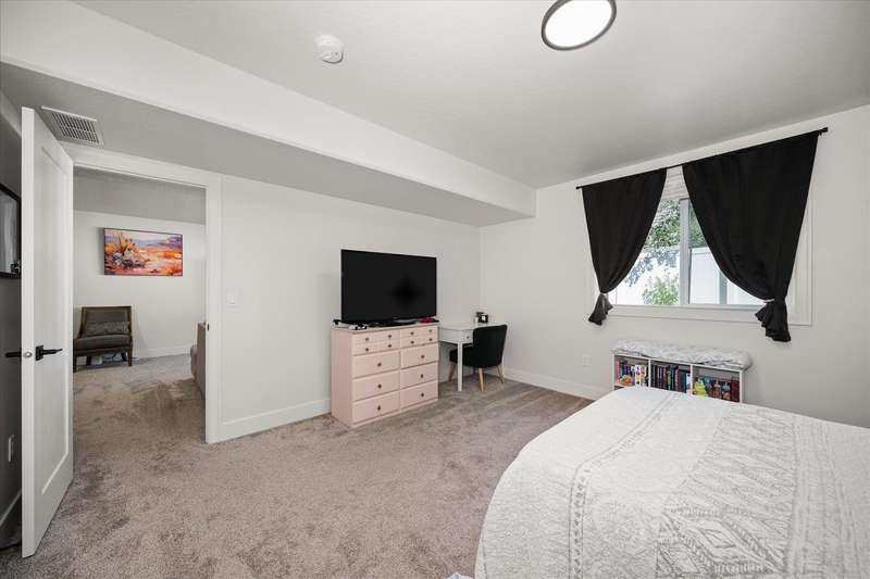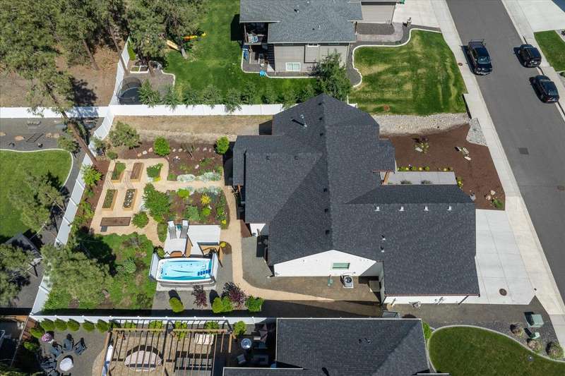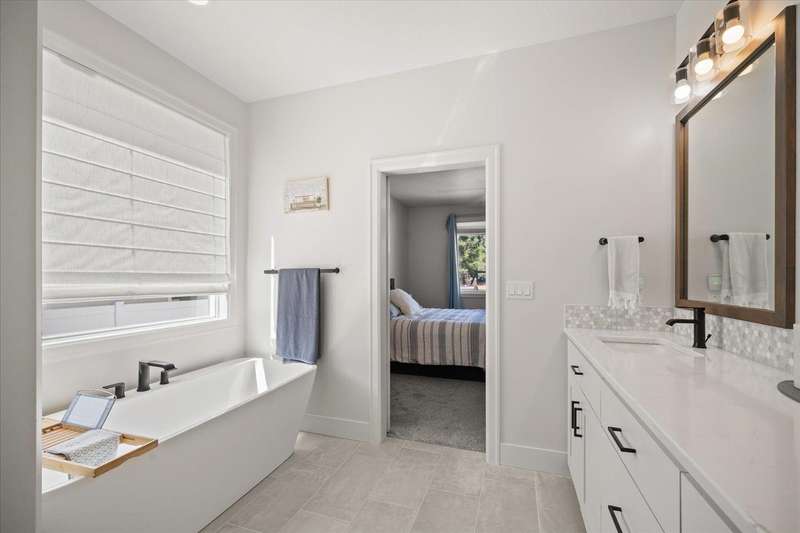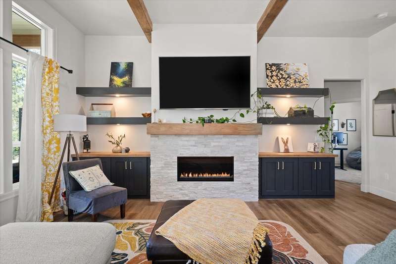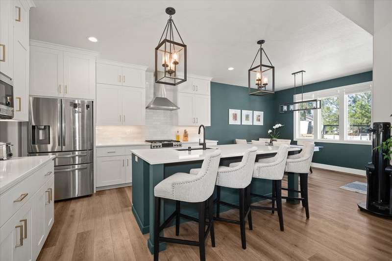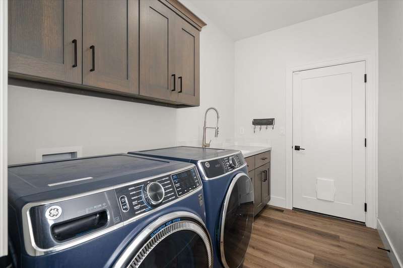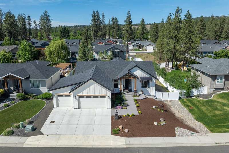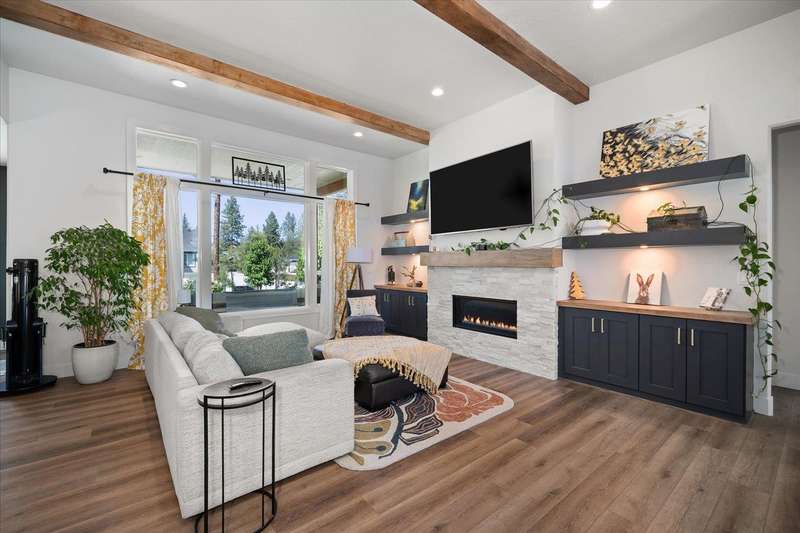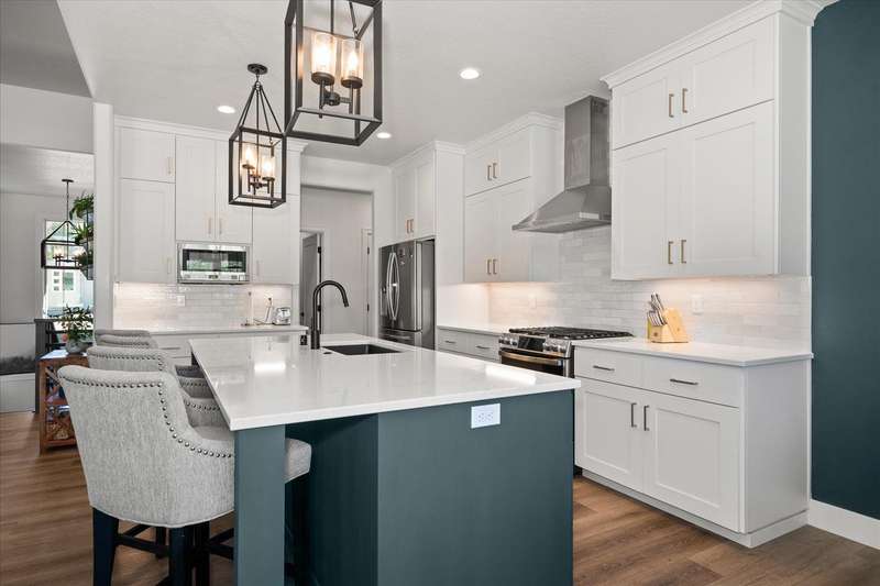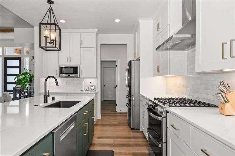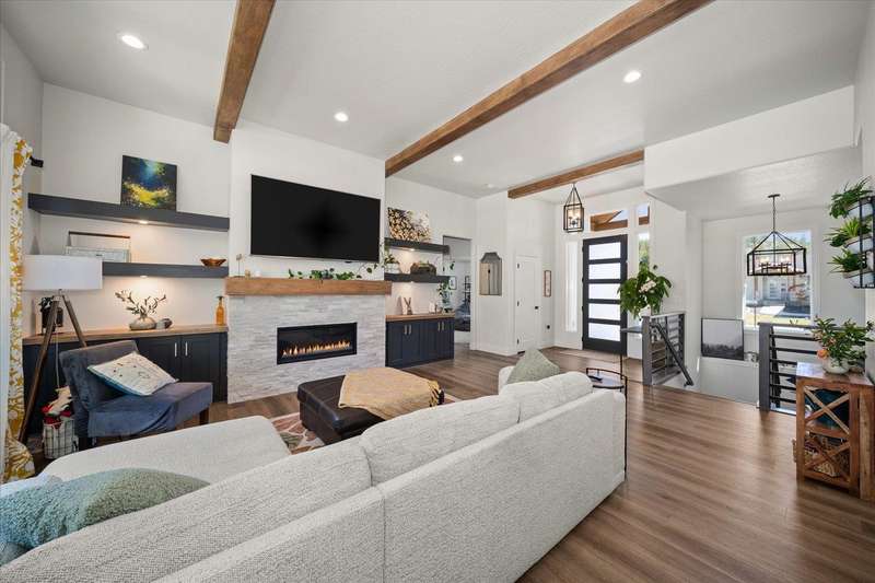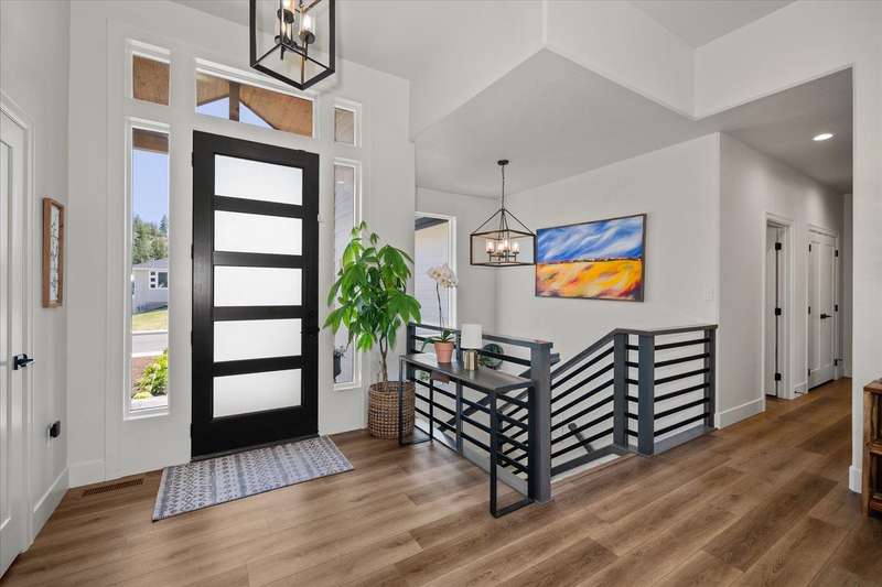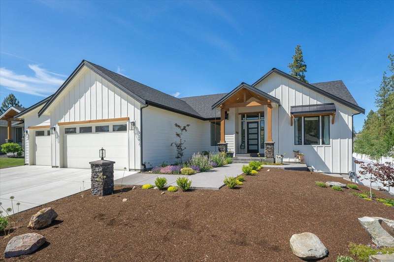 This beautifully crafted, 5 bedroom, 3 bath rancher boasts Top-Notch finishes. The gorgeous kitchen features high-end stainless appliances, quartz countertops, a tiled backsplash, a walk-in pantry, an oversized island with seating, and a dining area. Open floor design with soaring ceilings, white millwork throughout, full wood-wrapped windows, stone gas fireplace encased by floating shelves and commercial-grade LVP flooring. Escape the day-spa-inspired primary suite and relax in the garden tub or dual head walk-in shower with extensive use of tile, double vanity, and a walk-in closet that won't disappoint. The two additional main floor bedrooms are located opposite the primary suite, perfect for little ones, guests, or office space. The fully finished lower level features a large family room, two additional bedrooms, a full bath, and a storage area. To top off a great home, enjoy time on the deck overlooking the Master Flower Garden and Swim spa. Other amenities include a HE furnace, AC, and a 3-car garage