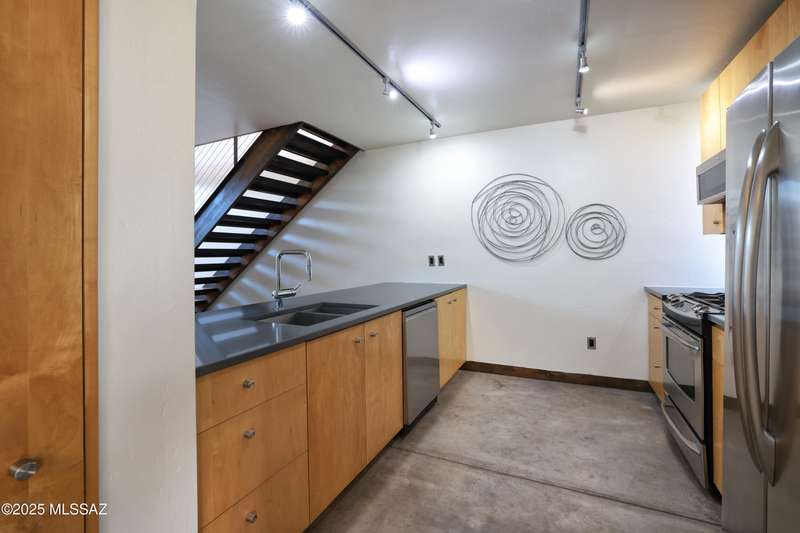 Contemporary design meets sustainable living in this Rastra-built loft home, crafted w/insulated concrete forms & designed by renowned architect Rob Paulus, in the heart of historic Barrio Viejo. This 2-bedroom, 2-full baths residence features an abundance of natural light, expansive windows, polished concrete & bamboo floors, fabulous shaded courtyard for alfresco dining & lounging and 2nd floor sundeck. Sustainable finishes include Caesarstone, Rastra, Trex & Avonite. Low-E windows, rainwater harvesting cisterns enhance eco-conscious living. Barrio Viejo is Tucson's most iconic neighborhood known for its well-preserved charm, vibrant atmosphere & true Southwest barrio appeal. Fantastic proximity to downtown, restaurants, shops & cultural attractions. Great live/workplace. No HOA.
