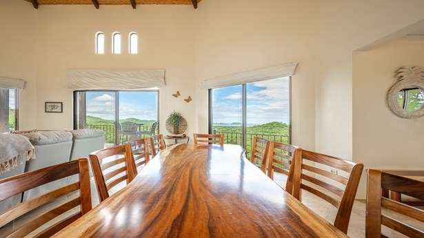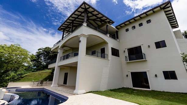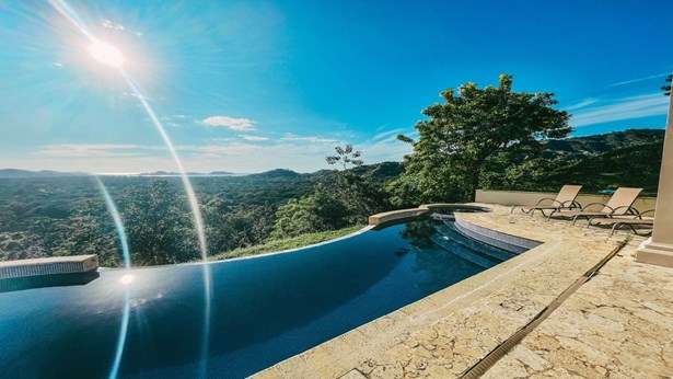 Welcome to Casa De La Promesa — a stunning 5-bedroom, 5.5-bath retreat located in the lush hills of Vistas de Flamingo, in Potrero. Casa de la Promesa is an exquisite Mediterranean-style home that offers a rare combination of privacy, elegance, and natural beauty. This multi-level 5330 sq ft villa is perfectly situated to capture breathtaking panoramic views of the Pacific Ocean, the surrounding mountains, and the green valley below. The home’s classic architecture, with its red-tile roof and arched lines, exudes timeless charm and sophistication from the moment you arrive.Inside, the spacious interior is filled with natural light and warm finishes. The open-concept design flows effortlessly from the gourmet kitchen to the expansive dining and living areas. The kitchen features granite countertops, custom hardwood cabinetry, stainless-steel appliances, and a large center island—ideal for casual gatherings or gourmet entertaining. The adjoining great room is framed by vaulted ceilings with exposed wood beams, creating a bright and inviting space that blends indoor comfort with the beauty of the outdoors. Just beyond the living room, an expansive covered terrace wraps gracefully around the back of the home, seamlessly blending indoor and outdoor living. From this elevated vantage point, take in breathtaking views of the Pacific Ocean, the Flamingo Marina, rolling mountains, and the picturesque farmland below — a truly captivating backdrop for everyday living and elegant entertaining.The home offers 5 generously sized bedrooms and 5 and a half bathrooms, each thoughtfully designed for comfort and privacy. The luxurious master suite includes a private balcony, a spa-inspired bathroom, and large windows that capture stunning ocean and mountain views. Guest suites also enjoy access to outdoor terraces or patios, ensuring every guest has a space to relax and unwind.One highlight of Casa de la Promesa is its resort-style infinity pool and sun deck, which seamlessly integrate into the surrounding landscape. Next to the pool area you will find a mature mango and lime tree! Whether you're enjoying a morning coffee, an afternoon swim, or a sunset cocktail, this serene outdoor setting is the perfect place to take in the sights and sounds of Costa Rica’s natural beauty. The lot is 5156m2. The home also features multiple covered terraces for al fresco dining, a gated driveway with ample parking, air conditioning throughout, and high-speed internet.Located just a short drive from Playa Flamingo, Playa Potrero, and the new Flamingo Marina, Casa de la Promesa is ideally positioned to enjoy the best of Costa Rica’s Gold Coast. Whether you’re seeking a permanent residence, a luxurious vacation home, or a high-end rental investment, this exceptional property delivers a lifestyle of tranquility, comfort, and panoramic beauty.Ready to experience the luxury and tranquility of Casa De La Promesa for yourself? Don't miss out on this incredible opportunity! Contact us today to book a private showing. Your dream home awaits!