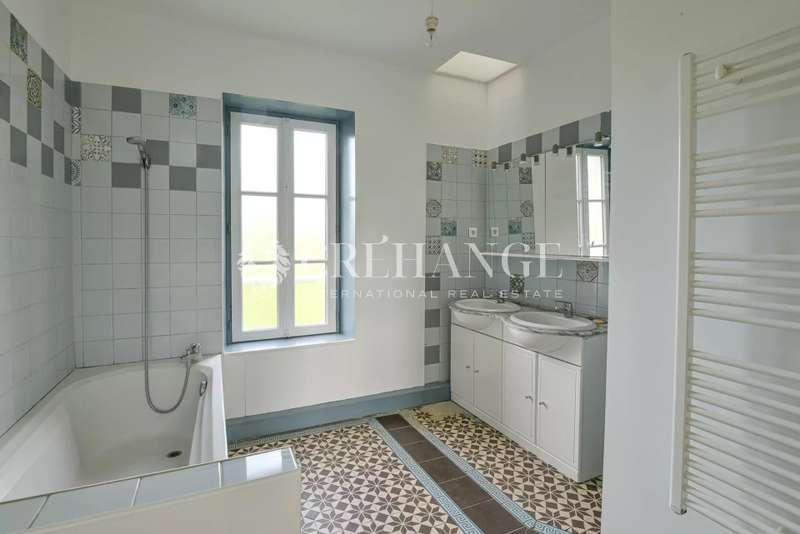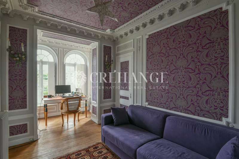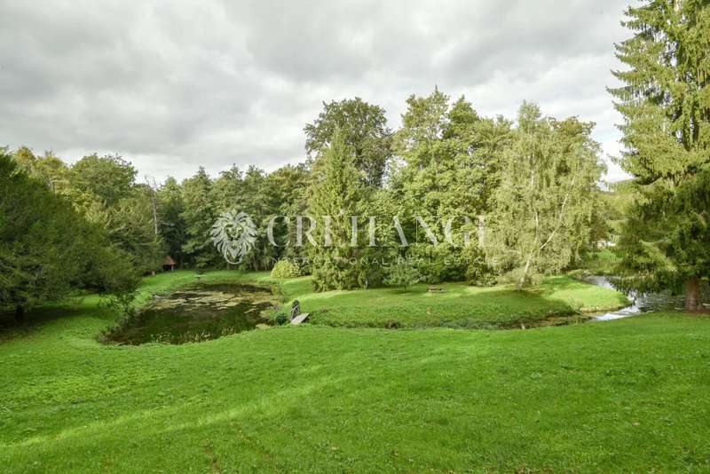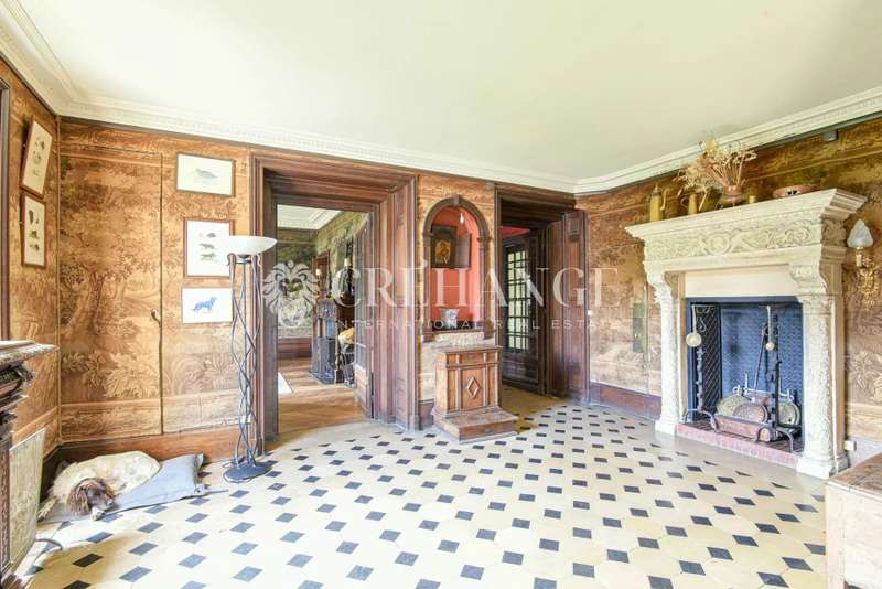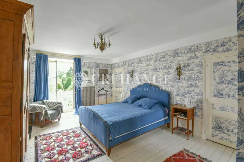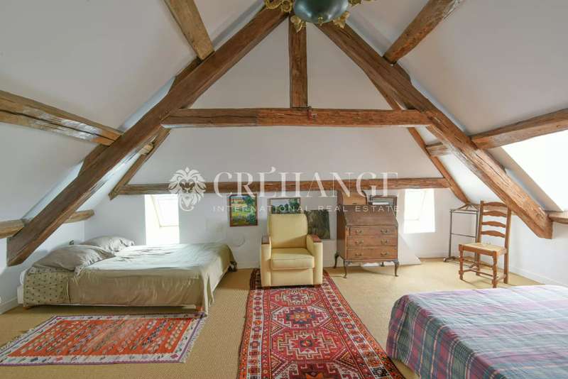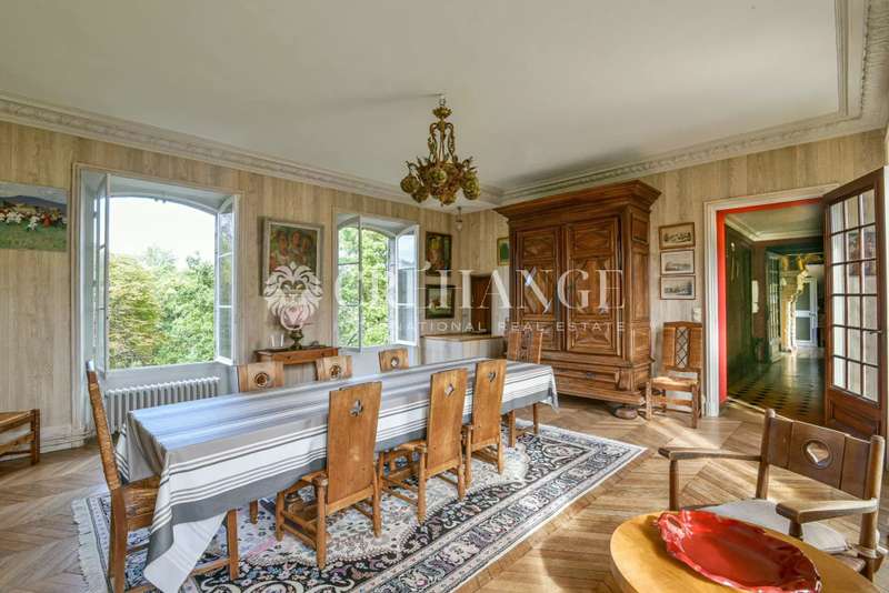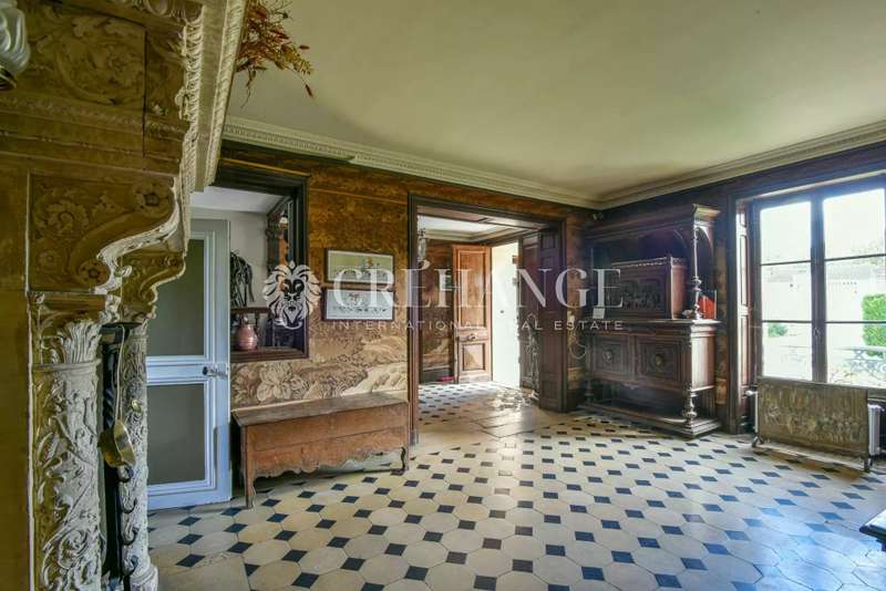 VAL D’OISE (95) – Charming property 40 km from Paris. Located in the Sausseron valley, within the Vexin Français Regional Natural Park, 17km from Isle-Adam, this splendid residence built in 1850, renovated and tastefully decorated, offers a very pleasant living environment and benefits from the calm of nature with a wood and a pond below the house. Its spacious volumes and numerous bedrooms and bathrooms make it an ideal home for family life, beautiful receptions or a professional project to develop. The main house of 20 rooms (including 12 bedrooms) on 6 levels, includes: - On the ground floor: an entrance hall, a vestibule with stone fireplace, a living room with fireplace, a dining room, an equipped kitchen, toilets, an office or lounge bar with fireplace and an opening living room on the garden leading to a terrace, - On the 1st floor: 5 bedrooms, an office, 2 bathrooms, 3 toilets, - On the 2nd floor: 3 bedrooms, 1 living room, 2 bathrooms, 2 toilets - Converted attic: 1 bedroom, 1 living room, 1 bathroom, 1 toilet - Garden level at the back of the house: 1 living room, - Basement: a part with 2 cellars and the boiler room, and a part fitted out with 2 bedrooms, 1 bathroom, 1 toilet, opening onto a courtyard and connected to the garden level. Independent apartment possible. Burgundy stone floors, Hungarian point parquet floors, wooden frames, double-glazed windows, high ceilings, ceilings with moldings, woodwork, renovation in 2019 and new roof in 2021/22. Oil heating/heat pump. Added to the property: - An outbuilding, at the entrance to the property, comprising 3 rooms on 2 levels: 1 living room, 2 bedrooms, 1 bathroom, 1 toilet, work required. - Several annex buildings: a workshop (former wash house, bread oven) with cellar, a carport for 1 car, a gardening shed, a kennel, 12 horse boxes, parking for a dozen cars. 14km from Cergy-le Haut station: RER A Direct 42 minutes from Etoile or Line L Direct 51 minutes from St Lazare. 15 minutes from Pontoise by car. 50 minutes from Roissy airport. This home offers all the comfort and space necessary for family or professional use. Possible divisions. Do not hesitate to contact me to arrange a visit. Information on the risks to which this property is exposed is available on the Géorisks website https://www.georisks.gouv.fr